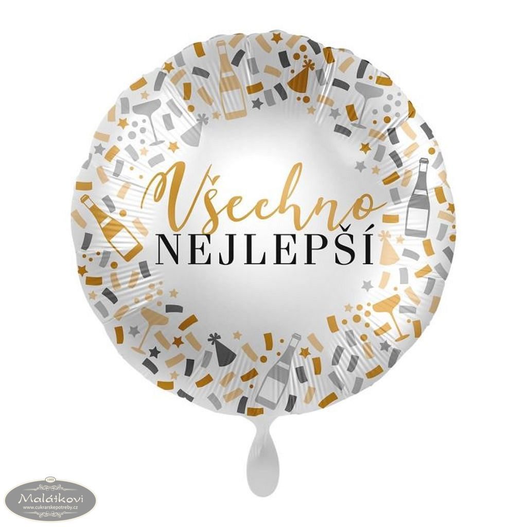 Fóliový balónek s plnobarevným českým potiskem "Vše nejlepší" z obou stran je ideálním doplňkem každé narozeninové oslavy. S průměrem 43 cm přitahuje pozornost a přináší radost a oslavnou atmosféru. Díky svému decentnímu designu se hodí k jakémukoliv narozeninovému setkání.