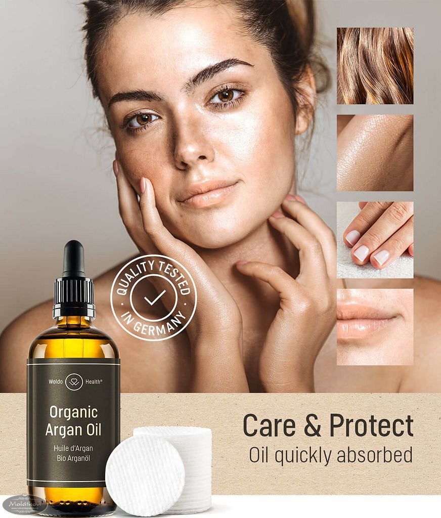 Arganový olej má blahodárné účinky při použití na pokožku, vlasy a nehty bez zanechávání mastného filmu. V Maroku, odkud pochází, je vyhlášený pro své účinky v péči o pleť.