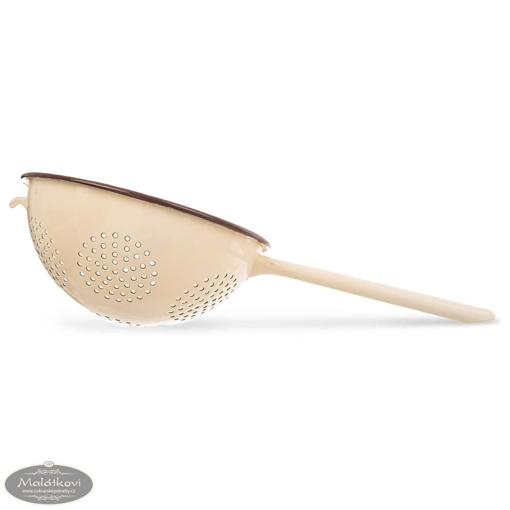 Pevná a trvanlivá konstrukce zajišťuje, že cedník vydrží dlouhá léta intenzivního používání. Díky smaltované povrchové úpravě je snadno omyvatelný, což usnadňuje jeho údržbu. Jeho celková délka dosahuje 41 cm, což zahrnuje i pohodlnou rukojeť pro snadnou manipulaci.
