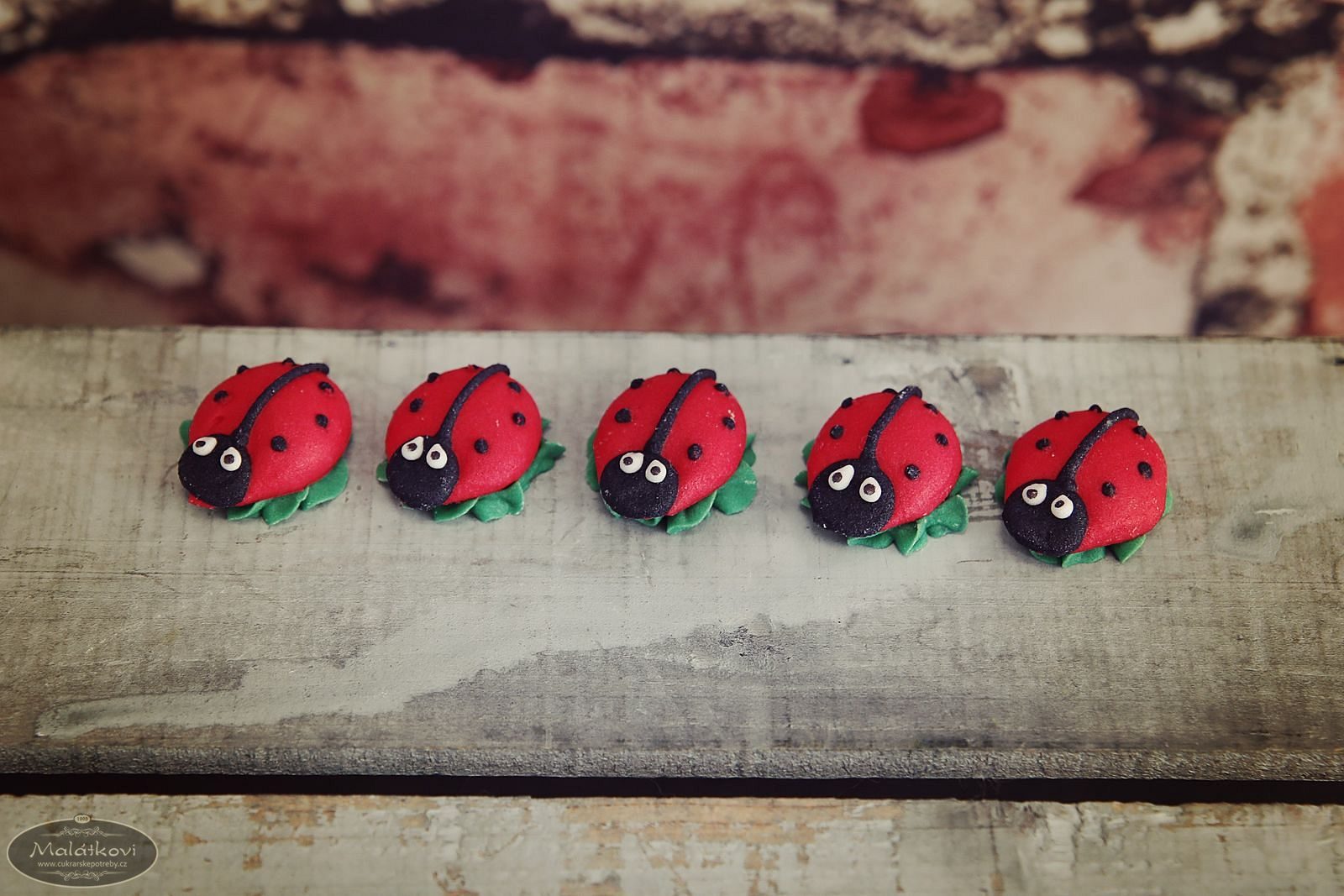 Cukrová dekorace s motivem berušky. Patří do kategorie cukrové dekorace.