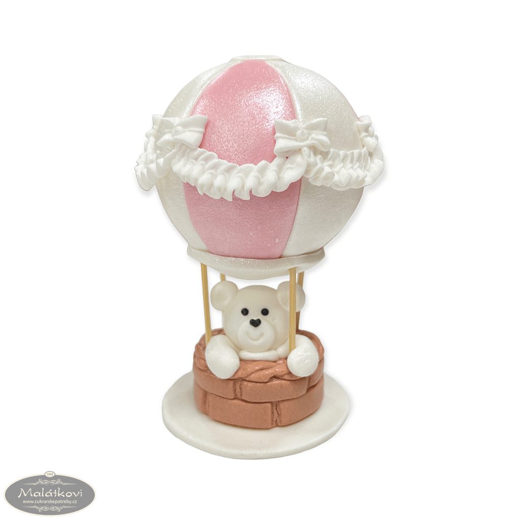 Cukrová dekorace na dort – Medvídek s balónkem (růžová)