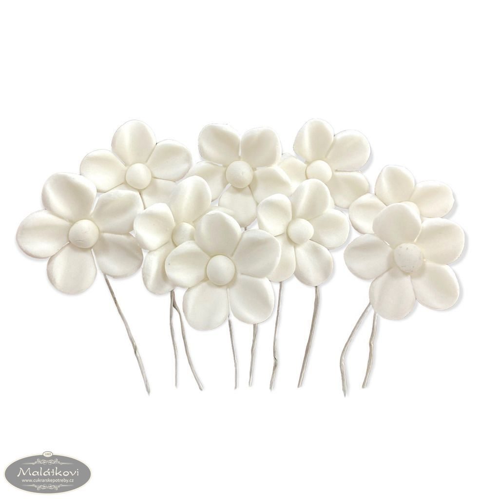 Elegantní dekorace ve tvaru sedmikrásek, které spadají do kategorie cukrových a oplatkových dekorací. Dodají vašim cukrářským výtvorům jemný květinový motiv.
