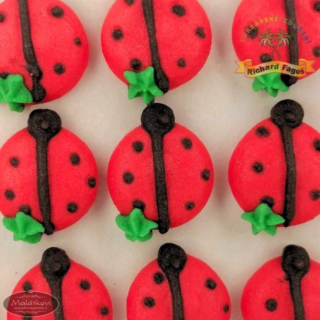 Cukrová dekorace určená ke zdobení cukrářských dezertů, dortů a zmrzlin. Berušky o velikosti cca 2 cm. 15 kusů na platíčku. Cena za 1 balení 15 kusů.
