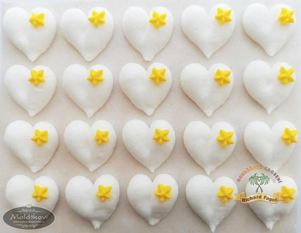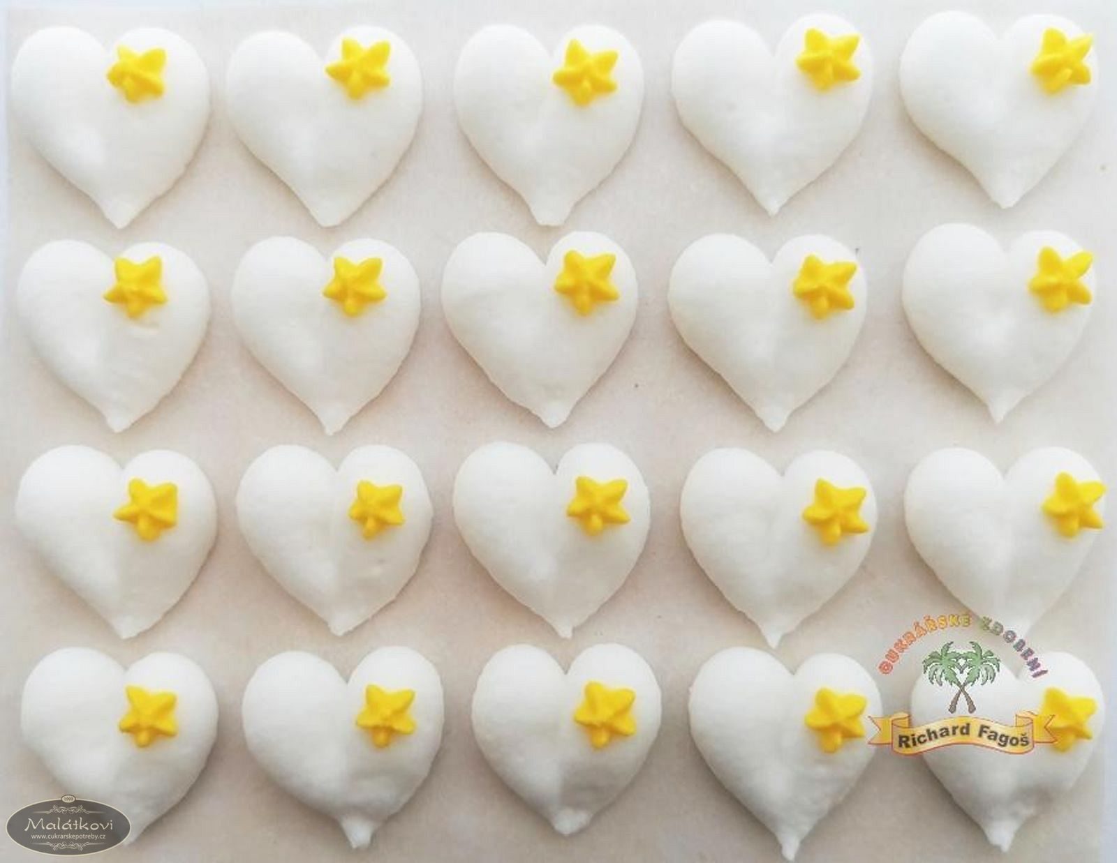Cukrové dekorace bílá srdíčka se žlutou kytičkou