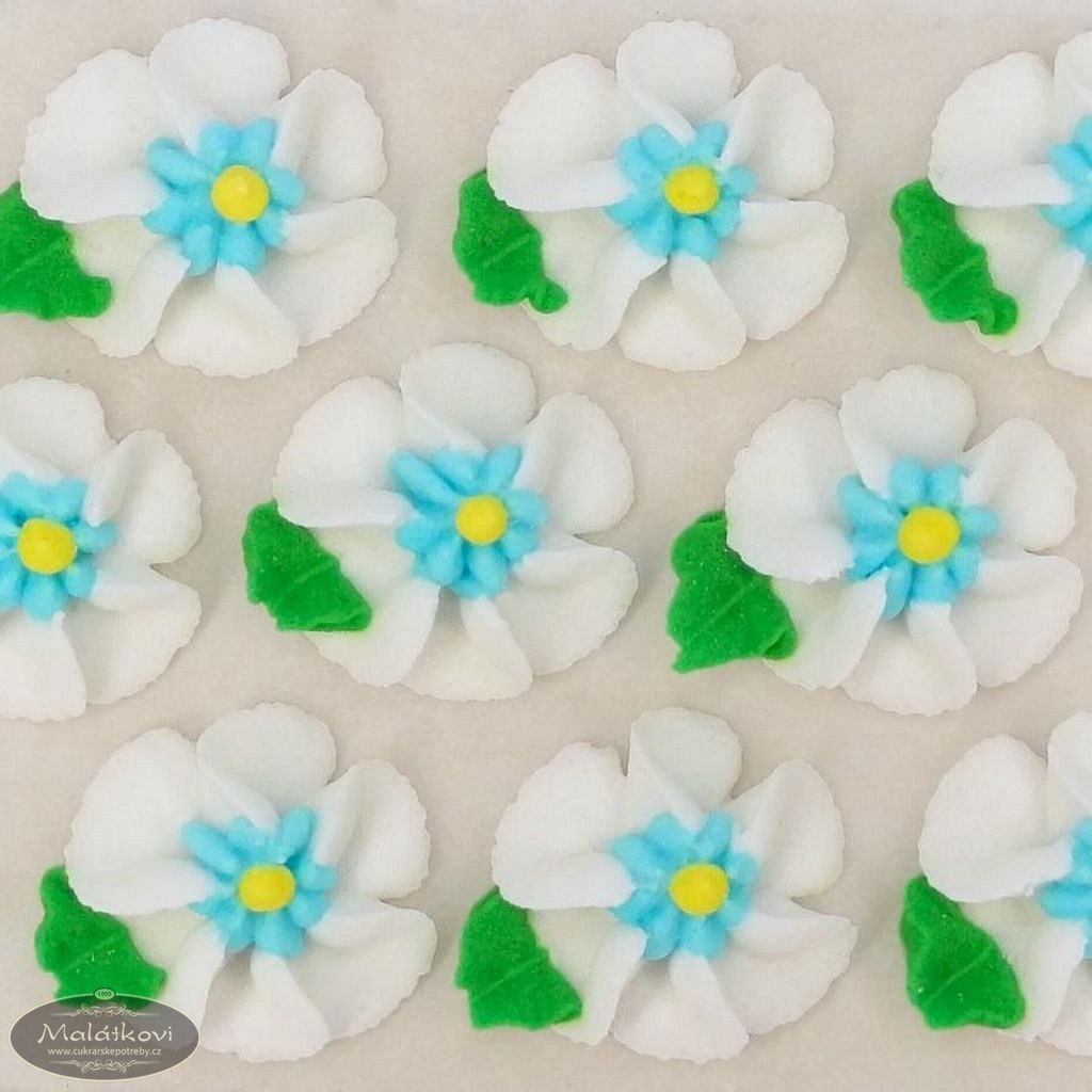 Cukrová dekorace určená ke zdobení cukrářských dezertů, dortů a zmrzlin. 9 květů v balení. Velikost i s lístečkem cca 2,5cm.
