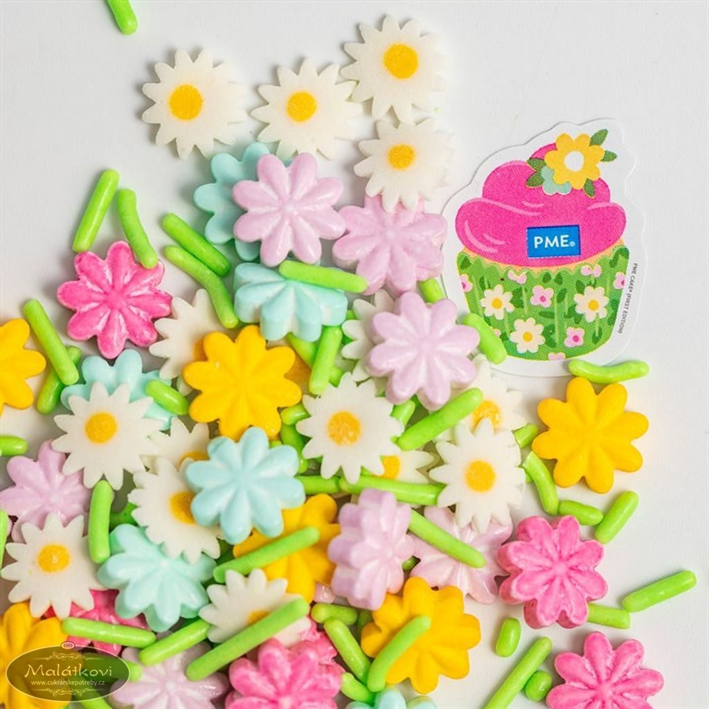 Rozkveťte své jarní a velikonoční pečení během pár vteřin. Cukrové zdobení KVĚTINOVÁ LOUKA – 60 g od PME dodá dortům, cupcakes i sušenkám svěží barvy, hravou texturu a kouzelný jarní nádech. Stačí nasypat – a vaše dezerty doslova rozkvetou.