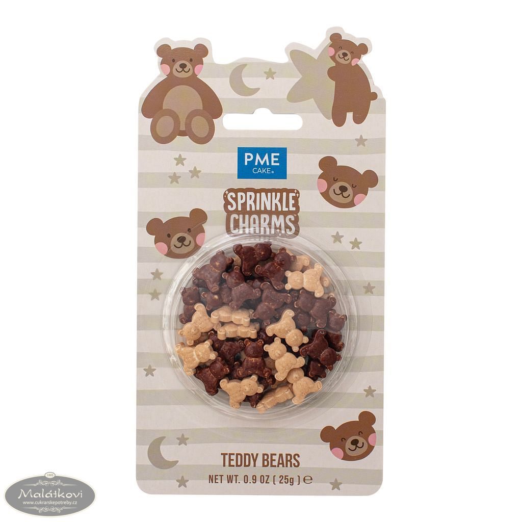 Směs obsahuje cukrové dekorace ve tvaru medvídků v krémové a hnědé barvě. Každý medvídek má přibližně 15,5 × 14 mm, takže na dezertu krásně vynikne.