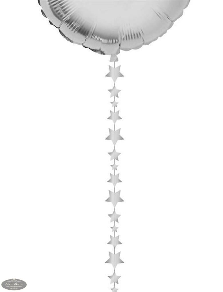 Vytvořte nezapomenutelnou atmosféru na Vaší párty s dekorativní stuhou - závěsem na balónky se stříbrnými hvězdami. Tato elegantní ozdoba perfektně doplní slavnostní výzdobu a dodá jí jiskru. stačí jen jednoduše zavažit balónky stuhou a připevnit na ně provázek se stříbrnými hvězdami pro ještě větší "wow" efekt.