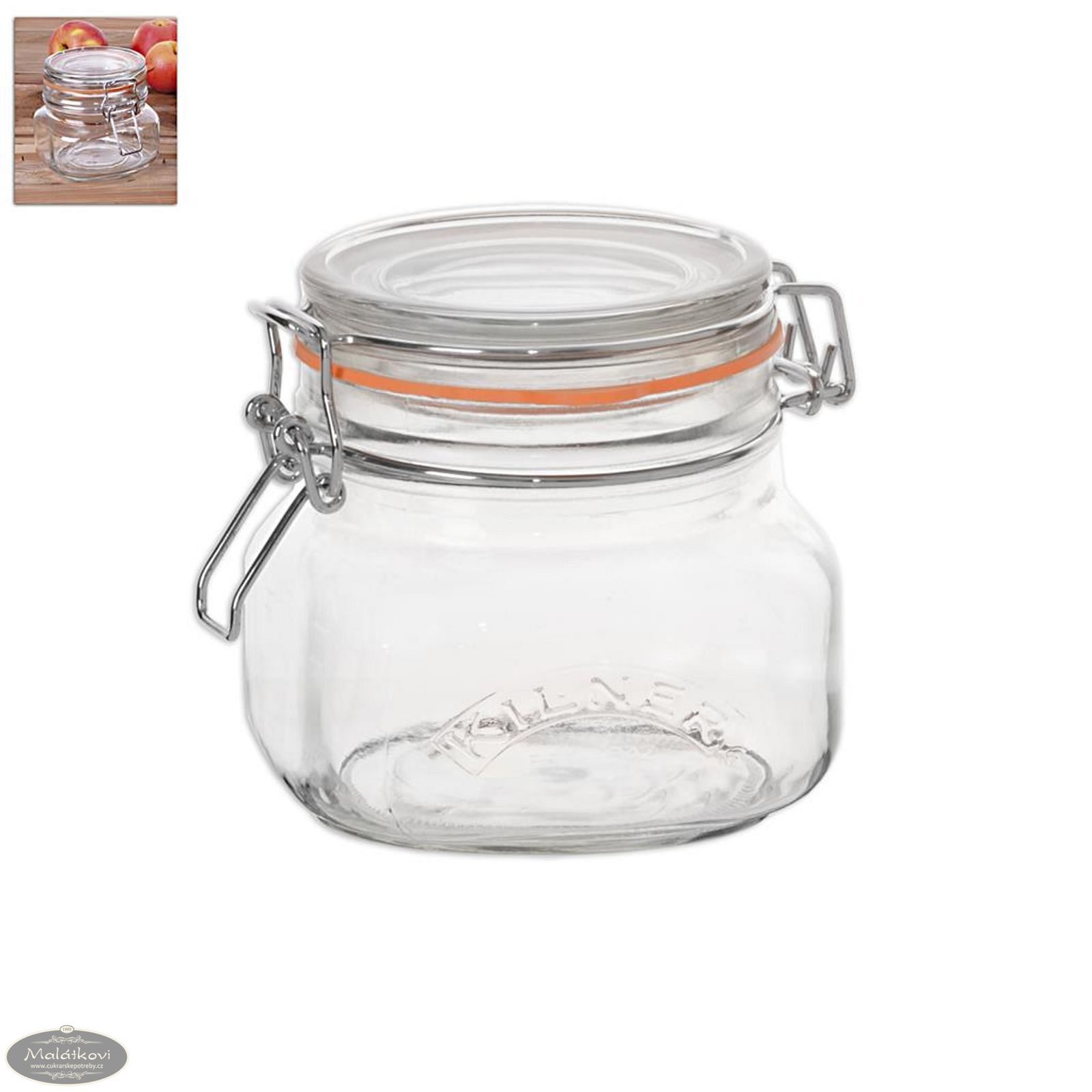 Dóza skleněná patentní s klasickým silikonovým těsněním a drátěným uzávěrem. Rozměry: objem 1 l, 12x12x14,5 cm.…