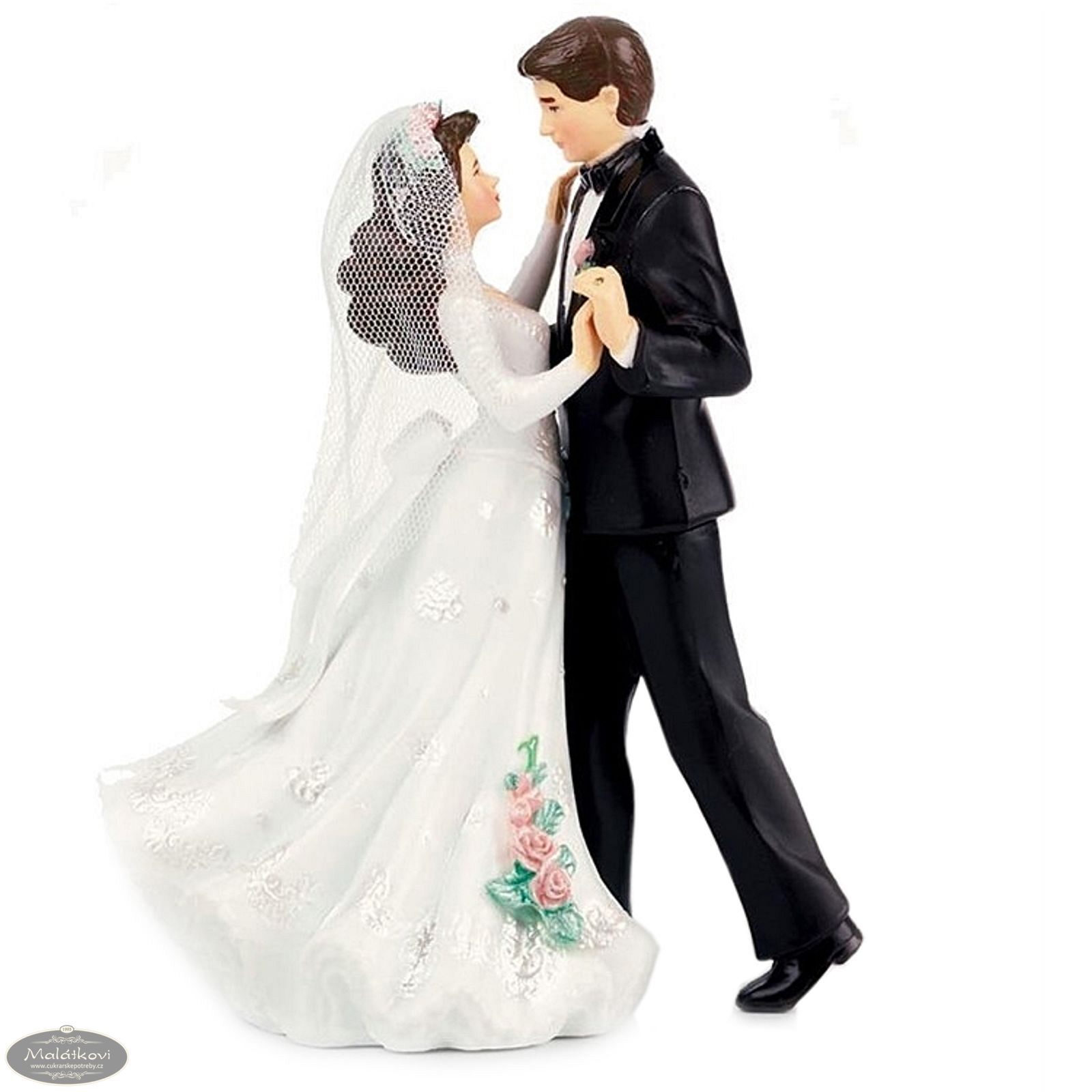 Masivní figurky - vyrobeno z polyresinu. Ženich chytá nevěstu na prut s prstýnkem. Cena za pár.