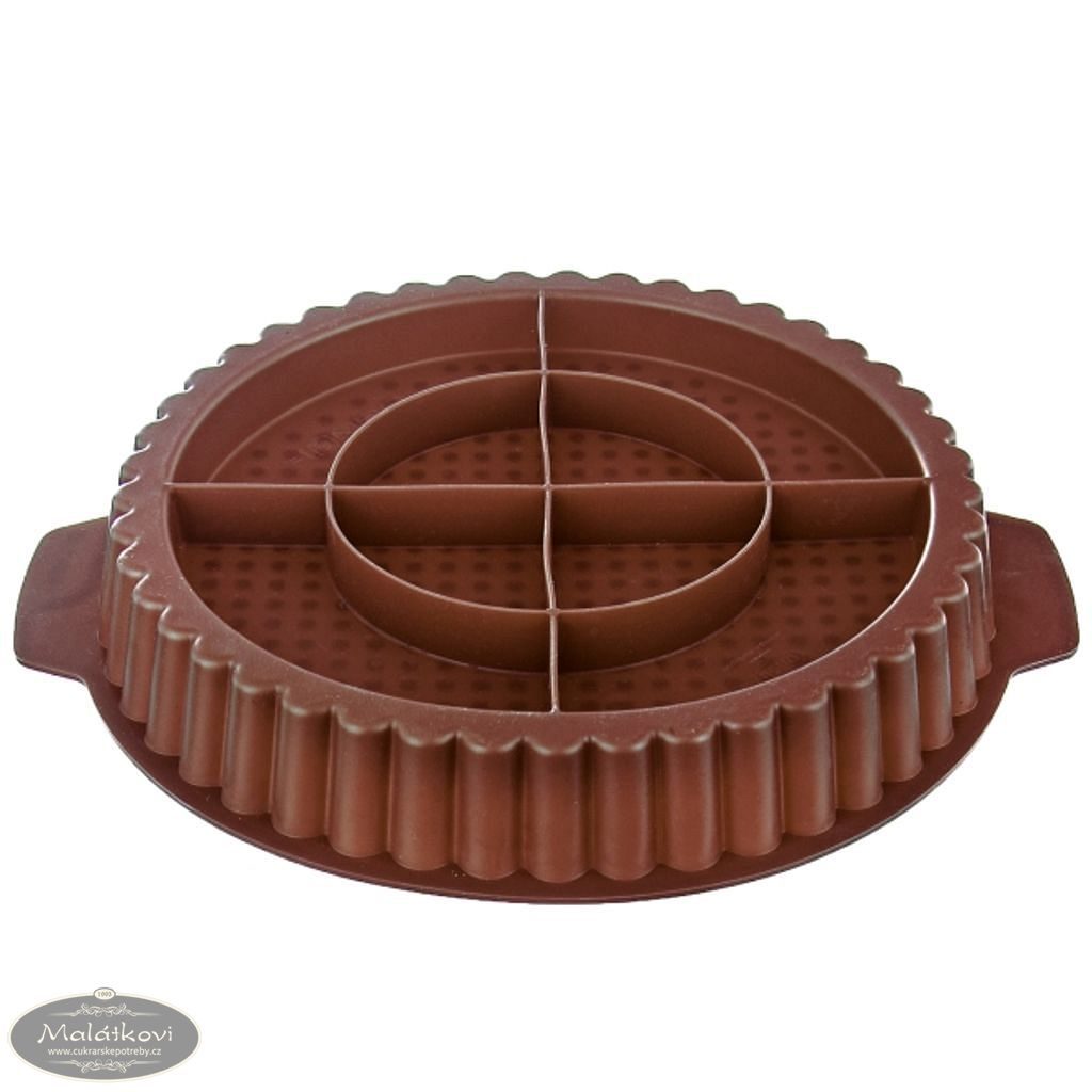 Hnědá silikonová forma na pečení s průměrem 27 cm a antiadhézním povrchem je ideálním pomocníkem pro přípravu dozlatova vypečeného nadýchaného korpusu. Díky zvýšenému okraji je perfektní pro plnění tvarohem, ovocem zalitým želatinou či jinou náplní. Se zpevněným dnem zajišťuje, že váš koláč bude vždy rovný a úhledný.