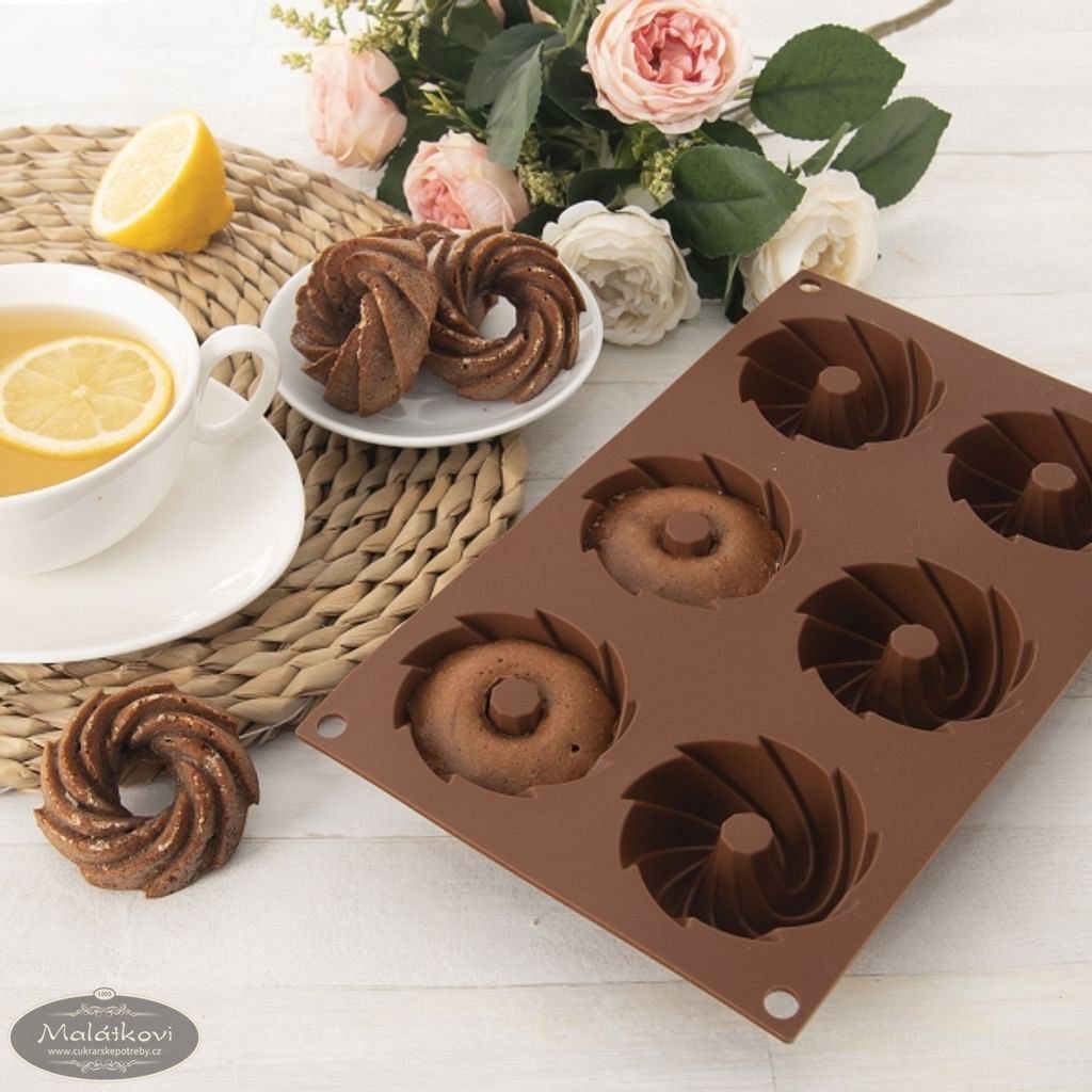 Silikonová forma na věnečky a mini bábovky Vám umožňuje snadno připravit a upéct lahodné sladké dezerty. Můžete najednou upéct 6 kusů pečiva, s jistotou, že se těsto nepřipálí a sladkosti snadno vyklopíte díky nepřilnavému povrchu.