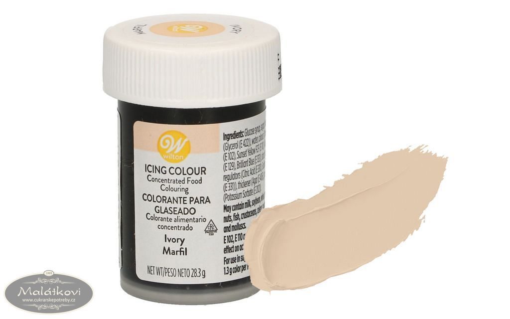 Ivory barvou můžete obarvovat marcipán, smartflex, gum-pastu a další potahovací a modelovací hmoty. Pro získání větší hutnosti a pružnosti hmoty určené pro tvarování, je vhodné přidat prášek Tylo. Barvu můžete smíchat s malým množstvím alkoholu a dále ji používat pro potírání ploch na modelovacích a potahovacích hmotách pomocí štětce. Pro zesvětlení přidejte bělobu. Tato barva je využívaná pro tvorbu svatebních dortů ve světlém odstínu. Tmavším odstínem můžete dobarvovat různé postavičky. Také lze barvu použít pro barvení kutilského, lékařského a dalšího náčiní. Barvu lze přidat i do krémů a piškotů. Barvou také můžete barvit makronky.