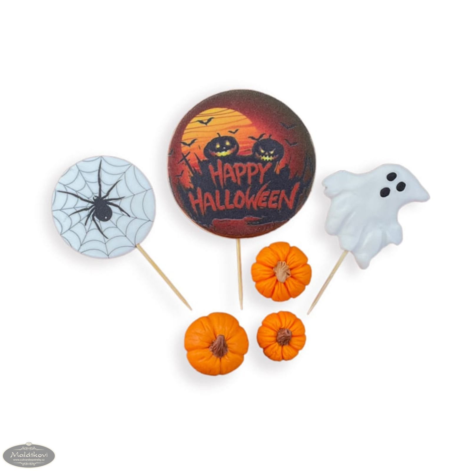 Sada cukrových dekorací s halloweenským motivem, určená k ozdobení dortu či koláčku. Dodá vašim sladkostem výrazný sezónní vzhled.