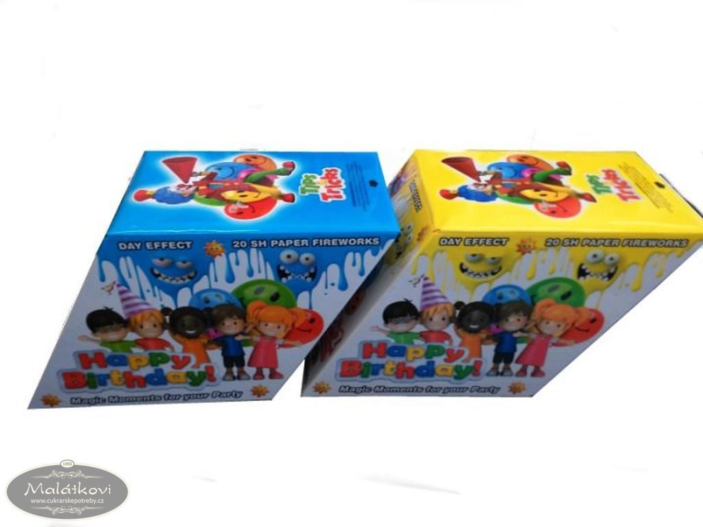 Mix barev: bílé, tyrkysové, červené, žluté, modré, fialové a růžové stuhy. Dlouhé barevné stuhy.Délka stuh: 8-9 metrů, Délka trvání efektu: 25 sek. Video naleznete zde.