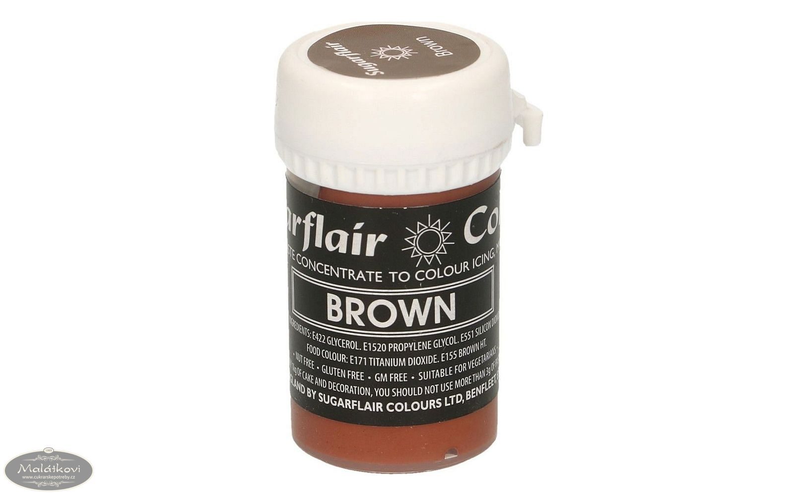 Hnědou gelovou barvou můžete obarvovat marcipán, smartflex, gum-pastu a další potahovací a modelovací hmoty. Pro získání větší hutnosti a pružnosti hmoty určené pro tvarování je vhodné přidat prášek Tylo. Barvu můžete smíchat s malým množstvím alkoholu a dále ji používat pro potírání ploch na modelovacích a potahovacích hmotách pomocí štětce. Pro zesvětlení přidejte bělobu. Hnědá barva se hodí pro dobarvování hmot určených na tvarování zvířecích postaviček, na kmeny stromů, kameny, hlínu, násady náčiní jako jsou lopaty, košťata, kladiva a další. Barvu lze přidat i do krémů a piškotů. V tomto případě náplň můžete ochutit oříškovou nebo čokoládovou příchutí, které barva připomíná. Barvou také můžete barvit makronky.