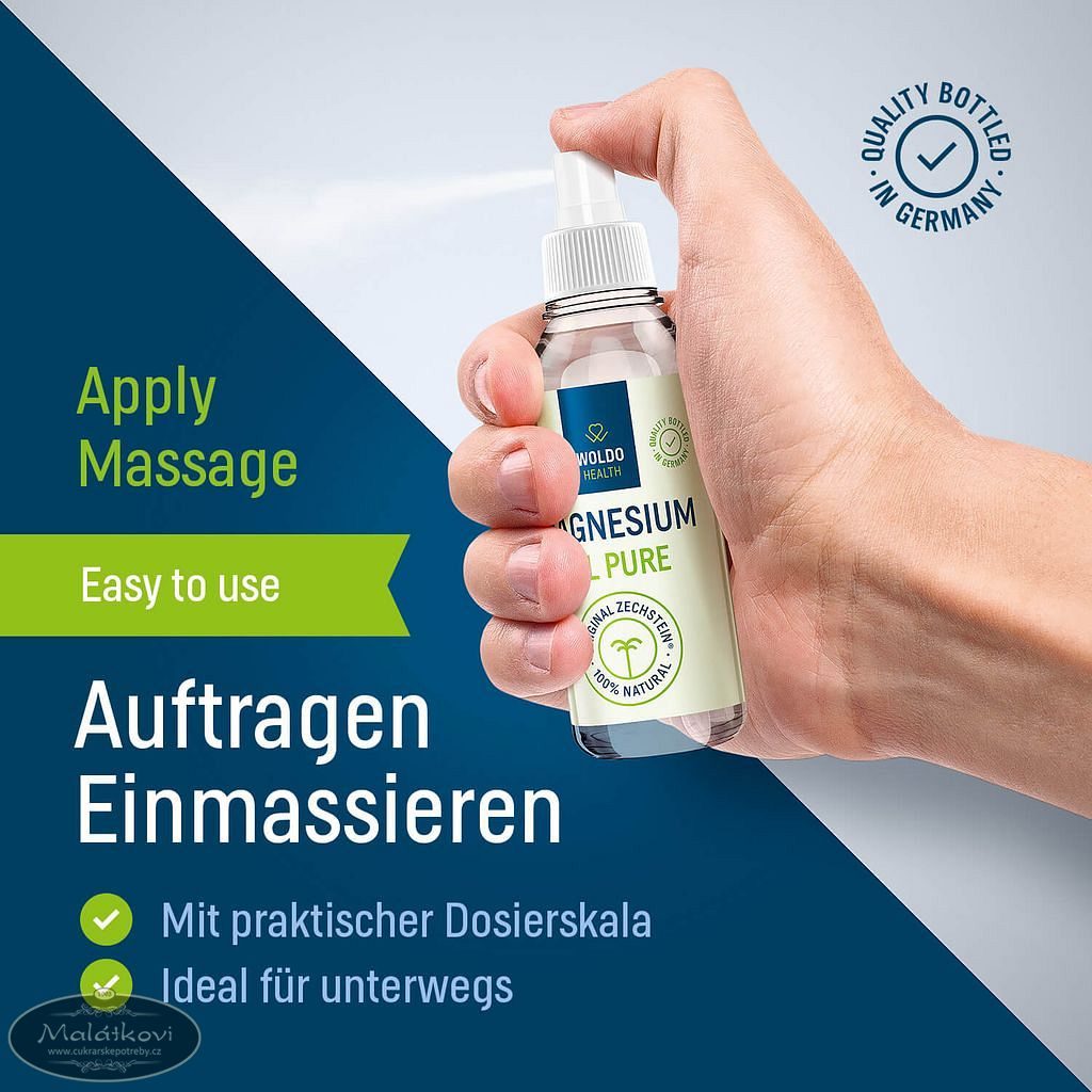 Hořčíkový olej vysoké kvality z čistě přírodního zdroje Zechstein z bývalých moří, místo které je 250 000 000 let staré. Magnesiový olej není výroben ze směsi vloček chloridu horečnatého, je vyroben bez chemického a tepelného ošetření. Tekutý hořčíkový olej 1000 ml vše přírodní s praktickým otvorem pro dávkování.