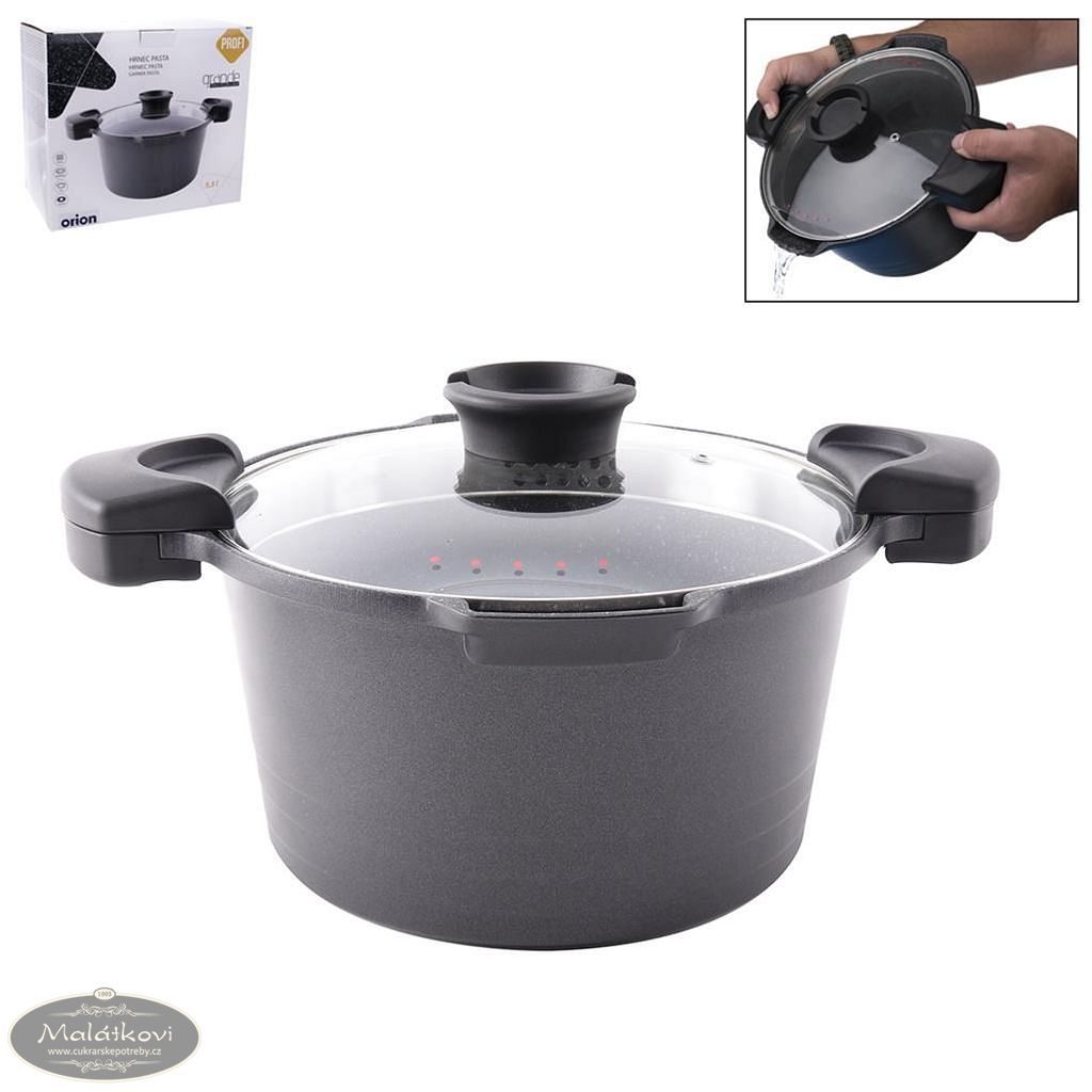 Hrnec PASTA GRANDÉ od značky ORION je ideálním pomocníkem v každé kuchyni. S objemem 5,5 litru a průměrem 24 cm nabízí dostatečně velkou kapacitu pro přípravu těstovinových pokrmů pro celou rodinu. Je vyroben z hliníku doplněného o nepřilnavý povrch PFLUON GRANIT, což zajišťuje, že připravované pokrmy se nepřipékají a vyžadují minimální použití tuku.