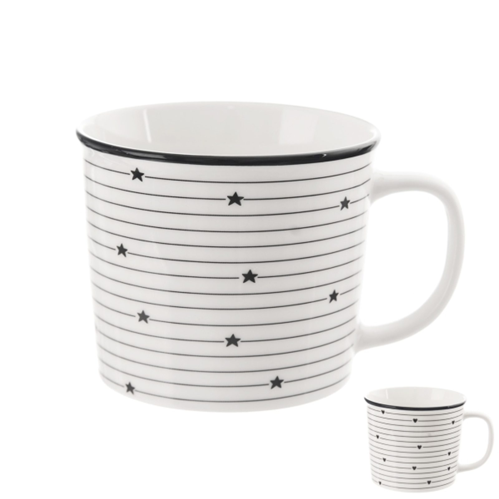 Hrnek s uchem s dekorem. Materiál: keramika. Assort dekorů. Vhodný do myčky i MVT. Rozměry: objem 0,37 l, pr. 9 cm, v.…