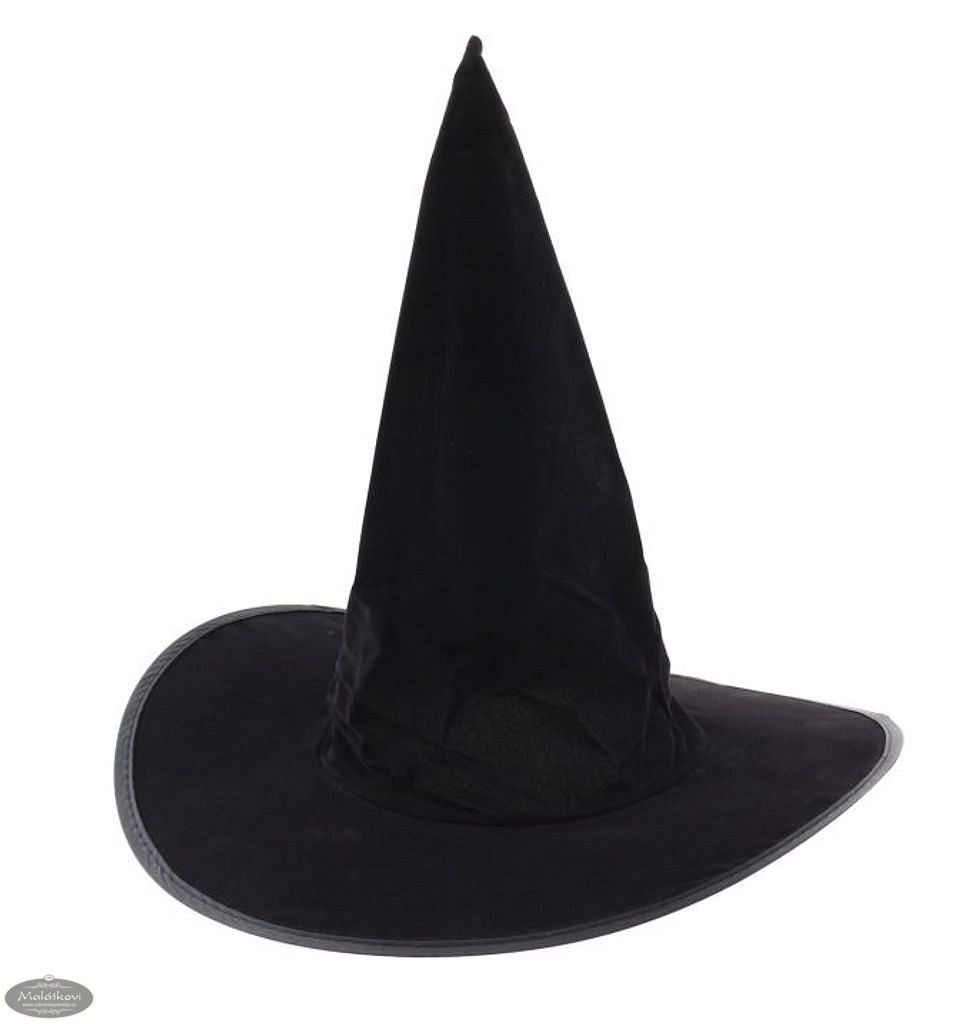 Čarodějnický klobouk černý. Klobouk vkusně doplní váš karnevalový kostým čarodějky při příležitosti karnevalové oslavy, stužkovacího večírku apod.