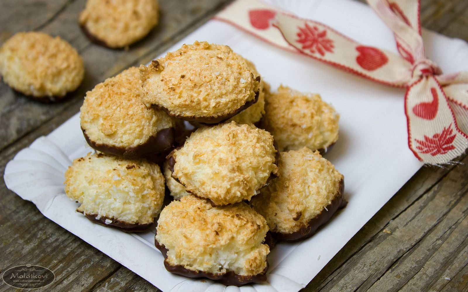 Kompletní sypká směs na výrobu kokosek - stačí voda a meruňková marmeláda. Vyšlehanou směs nastříkáme na pečící papír a můžeme péct.