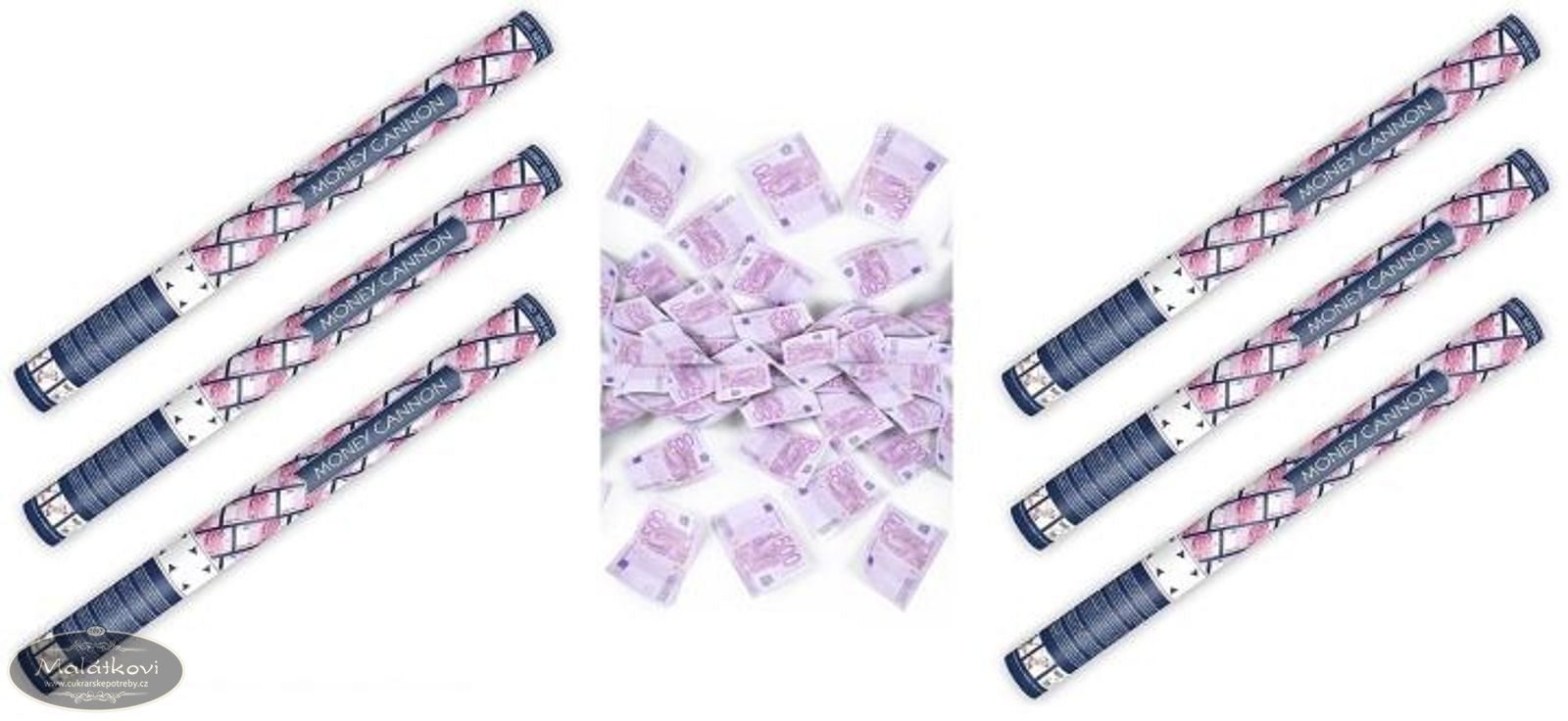 Sada konfet s efektem bankovek 500 EUR přináší skvělou zábavu pro každou příležitost. Tato sada obsahuje 6 kusů konfet o délce 60 cm, které jsou ideální pro použití jak v interiéru, tak i ve venkovních prostorech. Konfety jsou uloženy ve válcovité tubě, kterou snadno ovládáte pootočením. Po vystřelení se papírové bankovky krásně rozptýlí do okolí, což zanechává nezapomenutelný vizuální efekt.