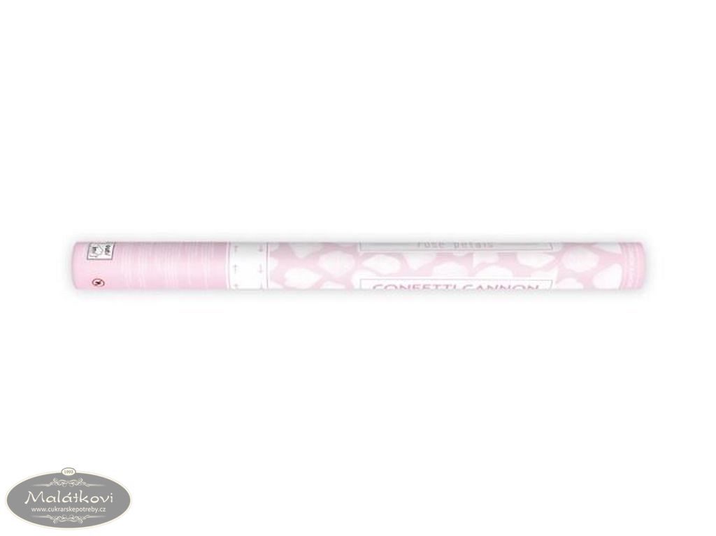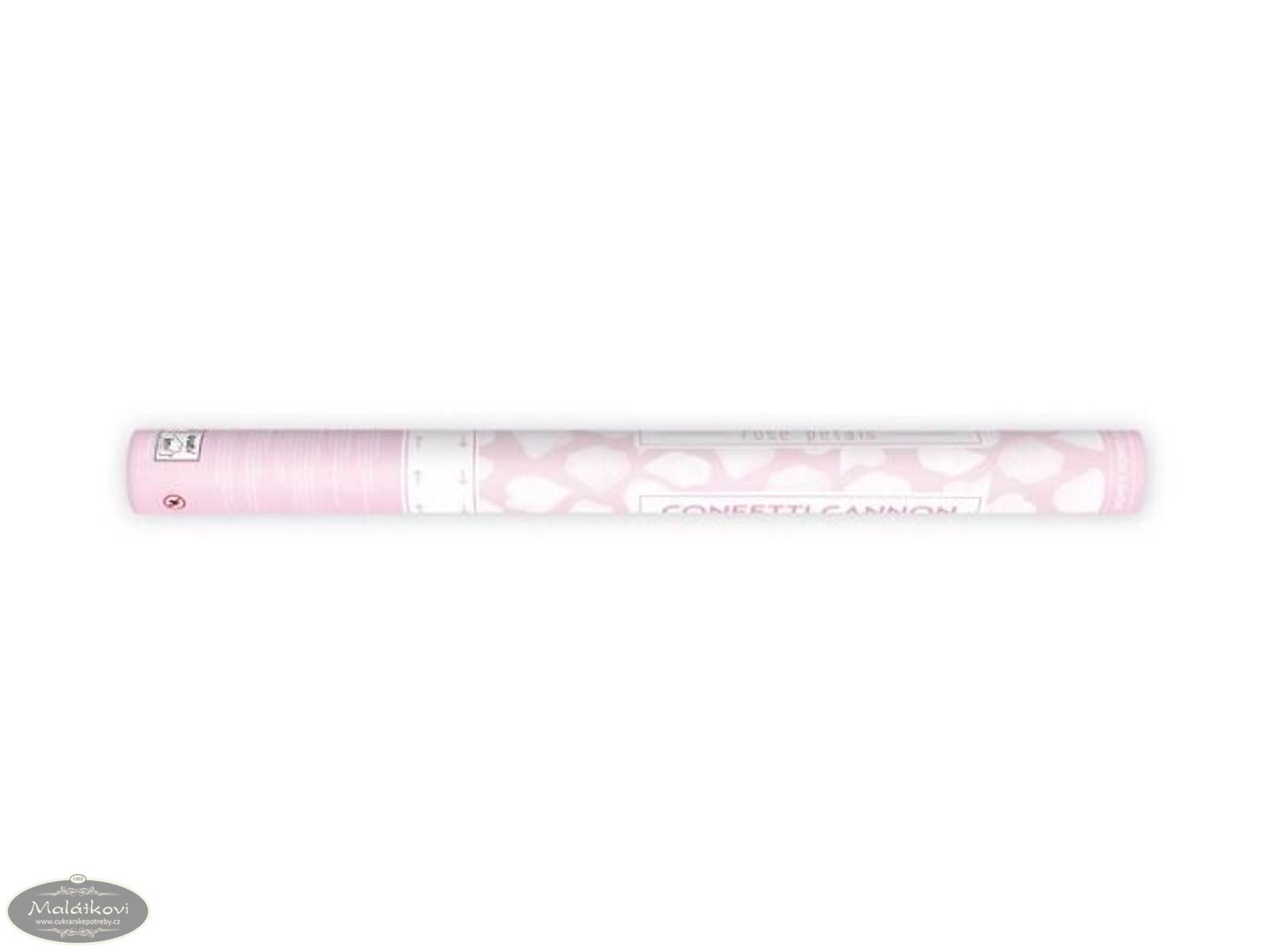 Konfety jsou uloženy ve válcovité tubě. Drží se v ruce a ovládají se mechanickým pootočením tubusu. Po vystřelení vyletí bílé lístky do výšky 5 až 8 metrů a rozptýlí se do okolí.