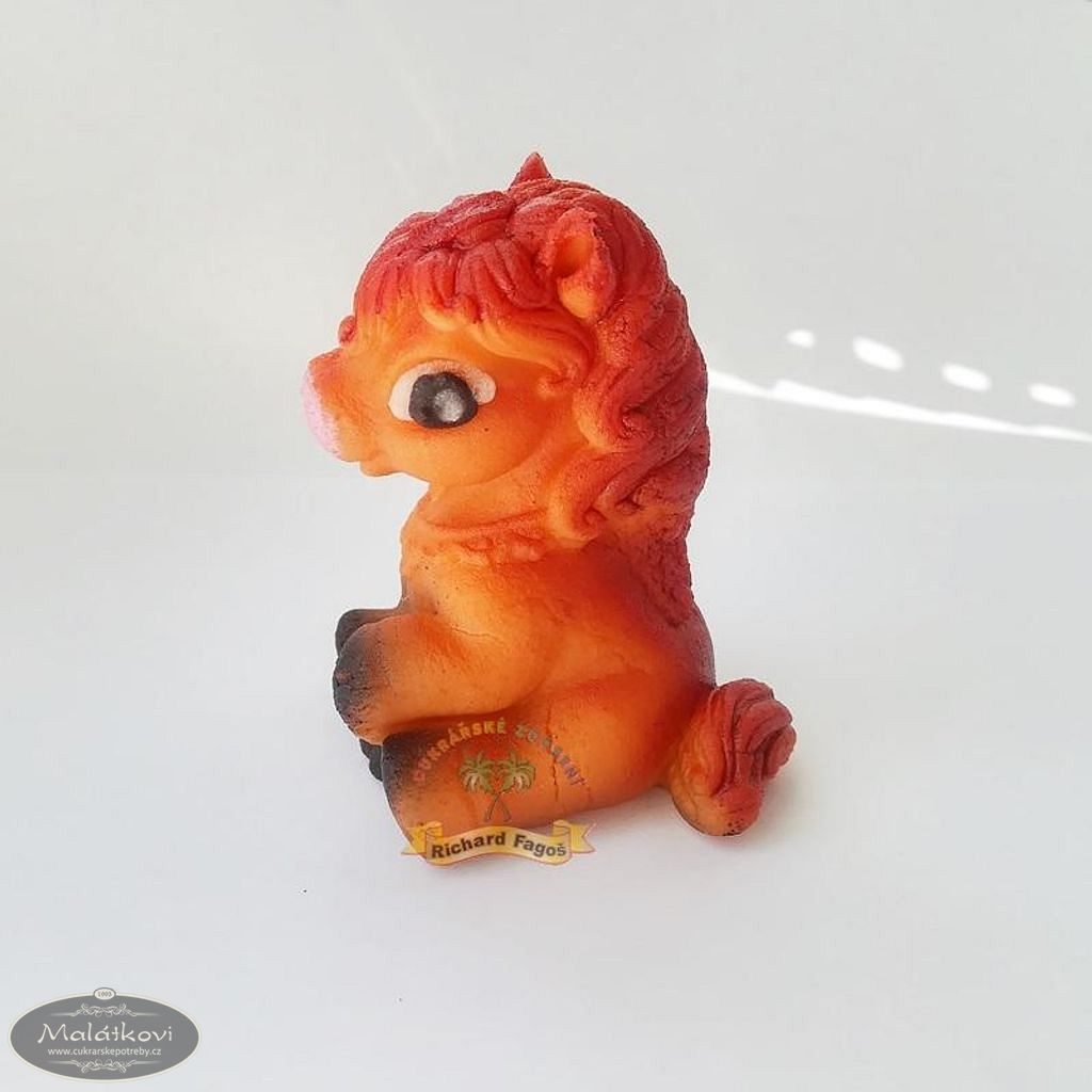 Vytlačovaný koník z kokosové modelovací hmoty s příchutí aroma sladkých mandlí. Použití na dorty, zákusky, svatební dorty atd.Hmotnost: 55gVýška 7cm a šířka 5 cm.