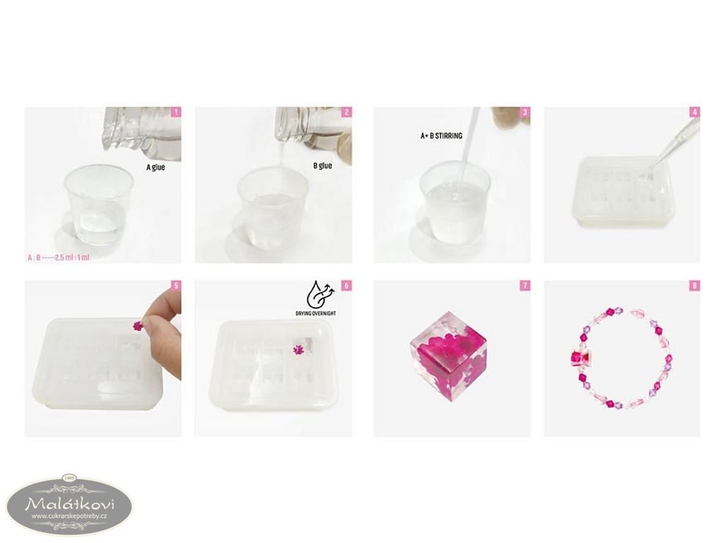 Můžete vytvořit až 7 epoxidových náramků s tímto setem. Množství závisí na velikosti a stylu, který si zvolíte.