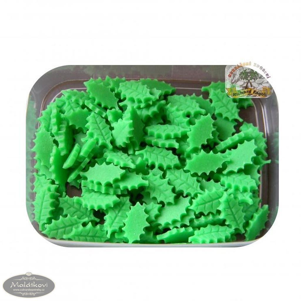 Ručně vyrobený minilísteček z kokosové modelovací hmoty s příchutí aroma sladkých mandlí. Použití na dorty, zákusky atd. Cena za krabičku. cca 120ks v krabičce. Velikost minilístečku cca 2cm.