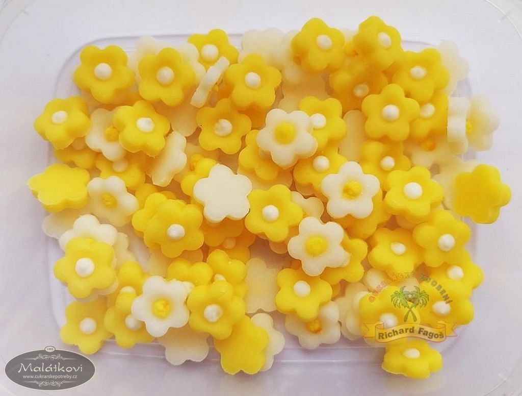 Ručně vyrobená kytička z kokosové modelovací hmoty s příchutí aroma sladkých mandlí. Použití na dorty, zákusky atd. Cena za krabičku. Cca120 kusů v krabičce. Velikost kytičky 1,5cm.