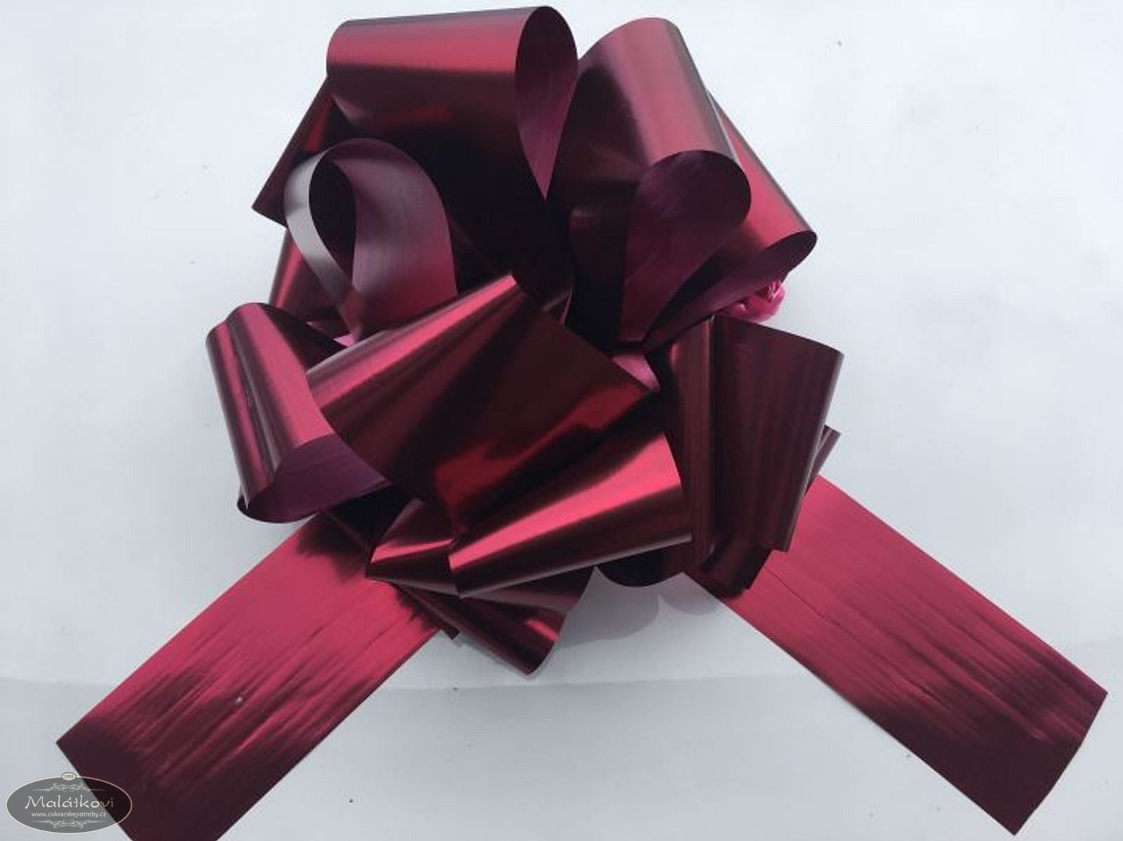 Velká tmavě červená mašle je luxusní dekorace na nové auto, dům, klavír, kolo nebo jakýkoliv mega dárek.