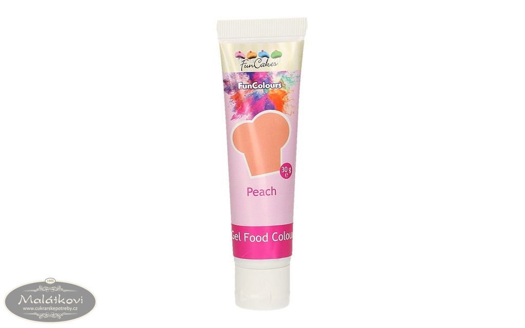 Vysoce koncentrovaná potravinářská barva meruňková / pleťovková na bázi glycerinu, vhodná na probarvení potahovacích hmot, marcipánu, krémů. Baleno ve znovu uzavíratelné tubě. Řada FunColours by FunCakes dodá vašim dortům vynikající vzhled a dojem. Výrobky jsou k dispozici v široké škále různých barev, 100% jedlé, certifikované Halal a snadno použitelné.