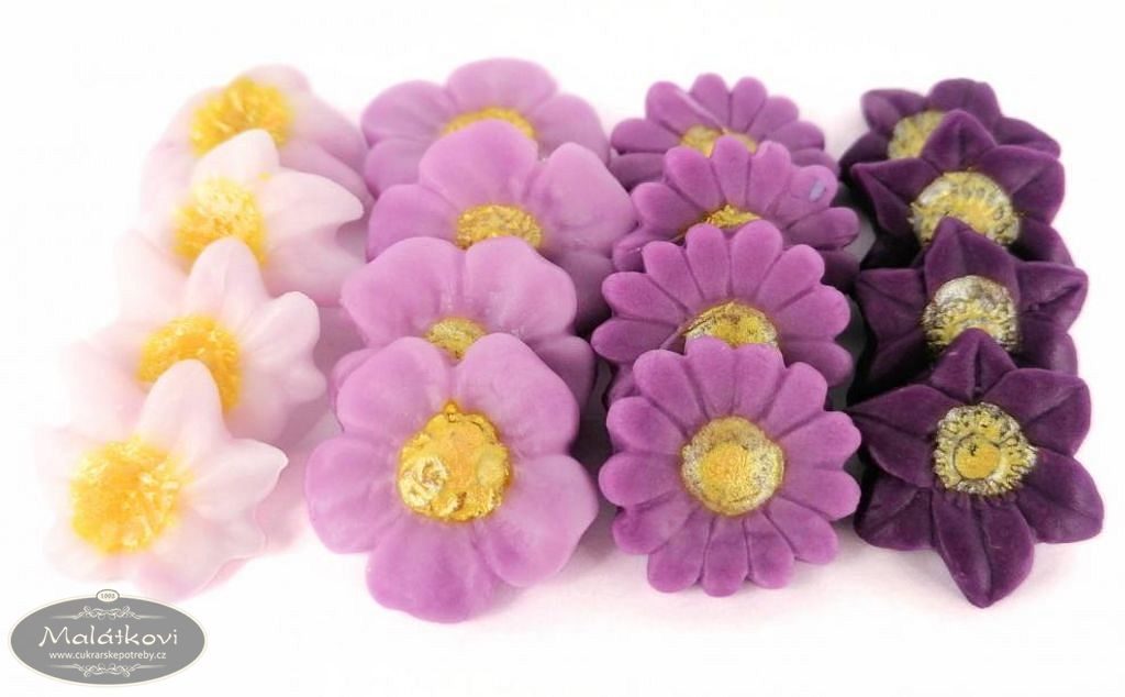Směs vytlačovaných kytiček ve všech odstínech fialové z DecorHmoty. Použití na svatební dorty, dětské dorty, zákusky, vánoční cukroví atd. Šířka 2cm. Cena za krabičku. V balení je 40 kusů.