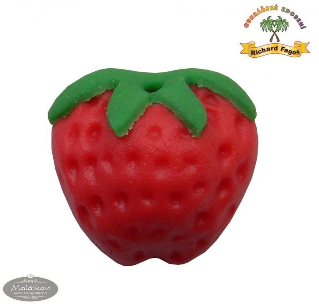 Jedlá ozdoba ve tvaru jahody z modelovací hmoty.Obvod cca 3 cm. Složení: cukr, glukóz.sirup, suš.mléko(alergen), kokos, voda, mandlové aroma, konzer.E202, barviva E124*, E102*, E133. *Tato barviva mohou nepříznivě ovlivňovat činnost a pozornost dětí. Výživové údaje (100g): Energetická hodnota 1790KJ/424kcal Tuky 8,8g z toho nas.mastné kys. 8,3g Sacharidy 83,5g z toho cukry 77,5g Vláknina 2,2g Bílkoviny 1,6g Sůl 0,2g