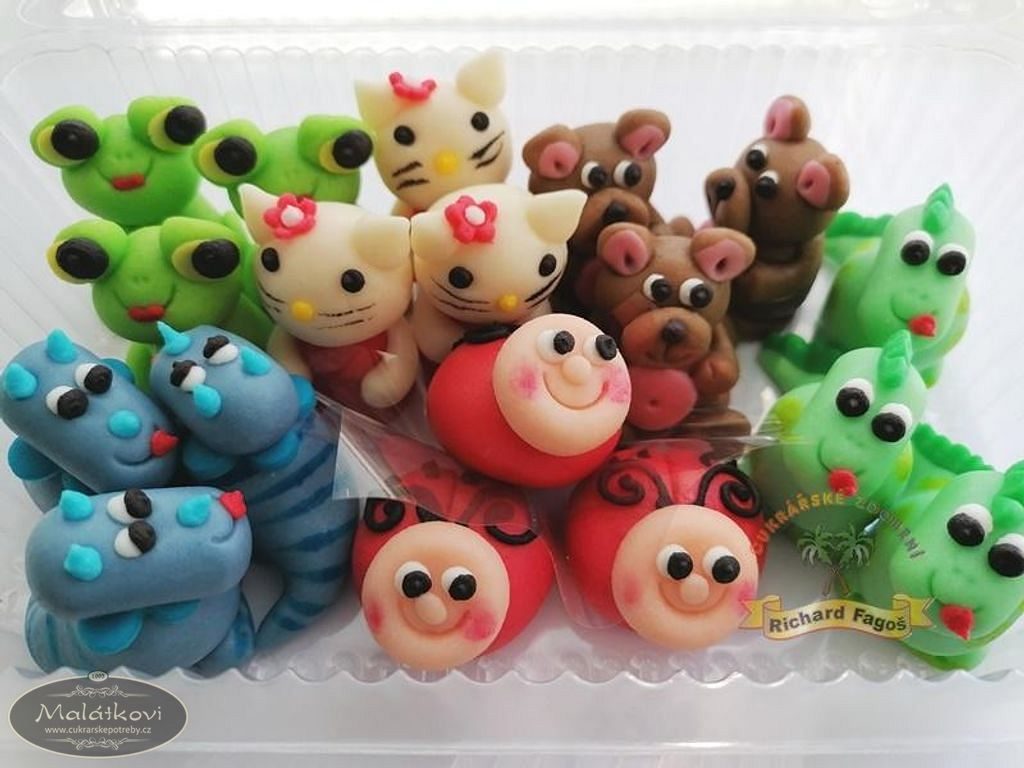 Ručně vyrobená zvířátka z kokosové modelovací hmoty s příchutí aroma sladkých mandlí. Použití na dorty, zákusky, atd.