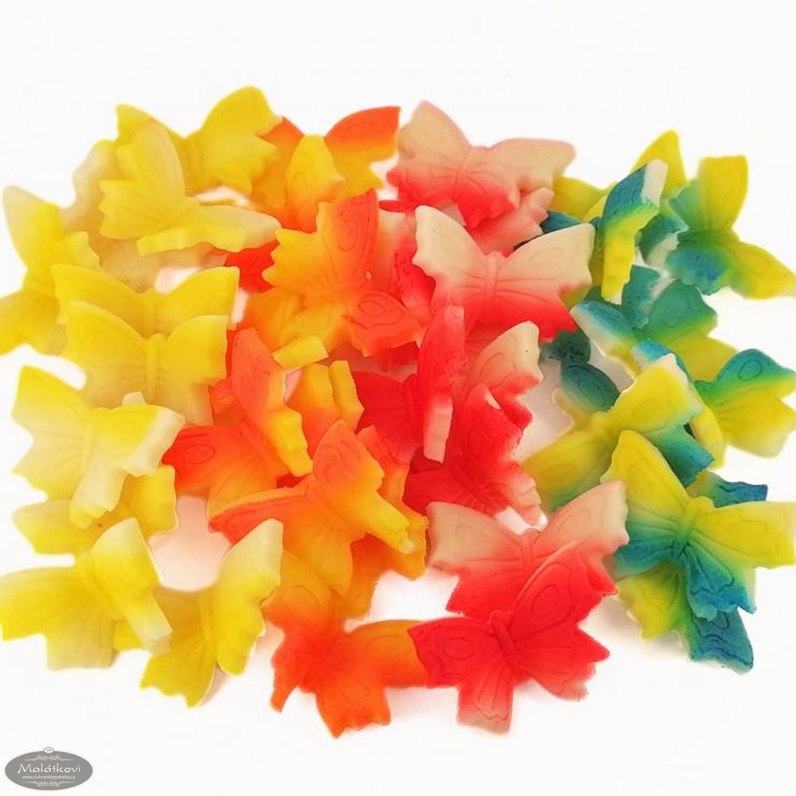 Ručně vyrobený motýlek z kokosové modelovací hmoty s příchutí aroma sladkých mandlí. Hmotnost: 65g Použití na dorty, zákusky atd. Cena za krabičku. 40 kusů v krabičce. Motýlek šířka 2,7cm. Minimální trvanlivost: dle data na obalu (6 měsíců od data výroby)Chraňte před slunečním zářením.