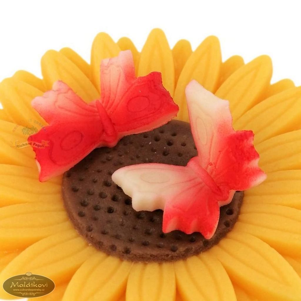 Ručně vyrobený motýlek z kokosové modelovací hmoty s příchutí aroma sladkých mandlí. Použití na dorty, zákusky atd. Šířka 2,7cm. Cena za 1ks.