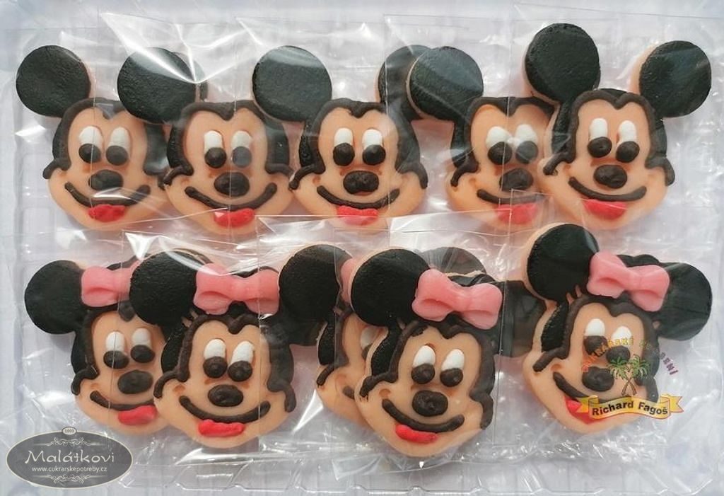 Vytlačované myši z kokosové modelovací hmoty s příchutí aroma sladkých mandlí. Použití na dorty, zákusky atd.Hmotnost: myšák 11g/ks; myška 13g/ks