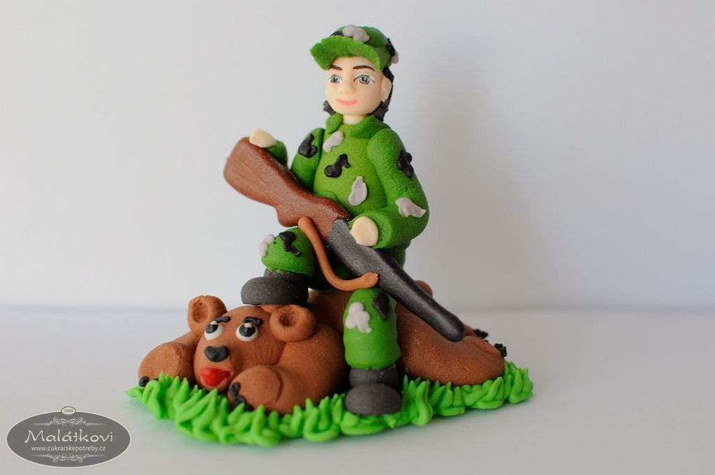 Cukrová dekorace na dort – Myslivec s medvědem (střední)