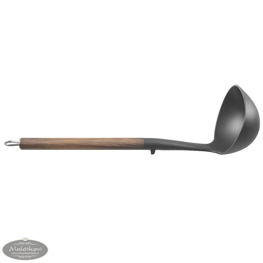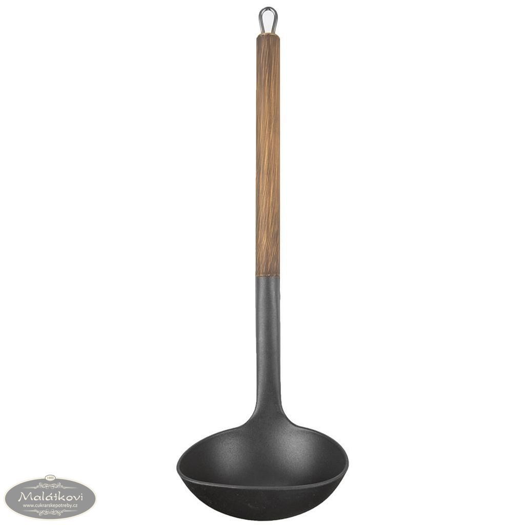 Naběračka je navržena s pohodlnou možností zavěšení, což zajišťuje snadné skladování a dostupnost, kdykoliv ji potřebujete. Je důležité poznamenat, že i přes její robustnost a stylový design, není doporučeno ji mýt v myčce na nádobí, čímž se zajistí delší životnost dekoru a materiálu. Díky svým praktickým rozměrům – šířka 10 cm a délka 33 cm – je skutečným univerzálním pomocníkem ve vaší kuchyni.