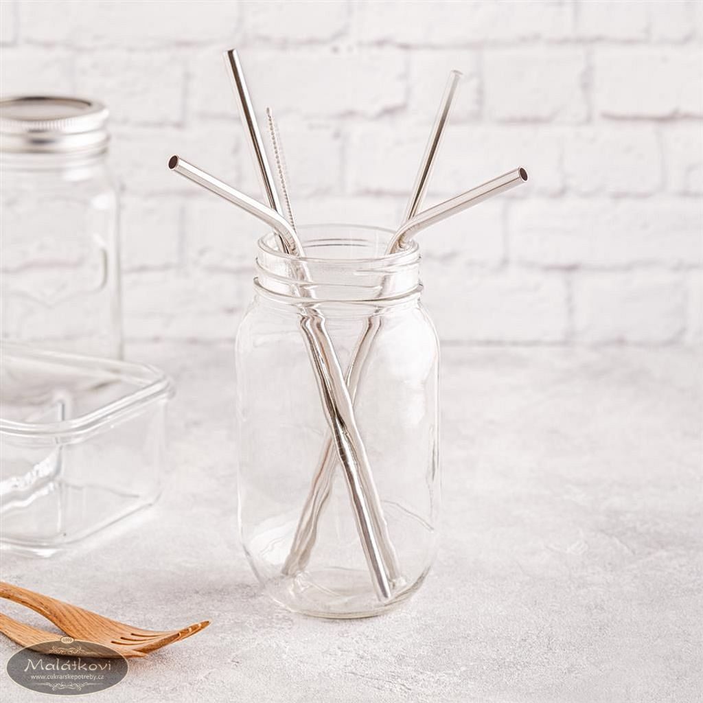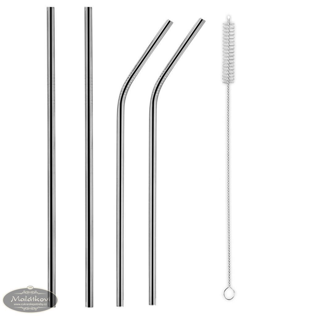 Nesmrtelné brčko nerezové - sada 4 ks - 21,5 cm + kartáček na čištění