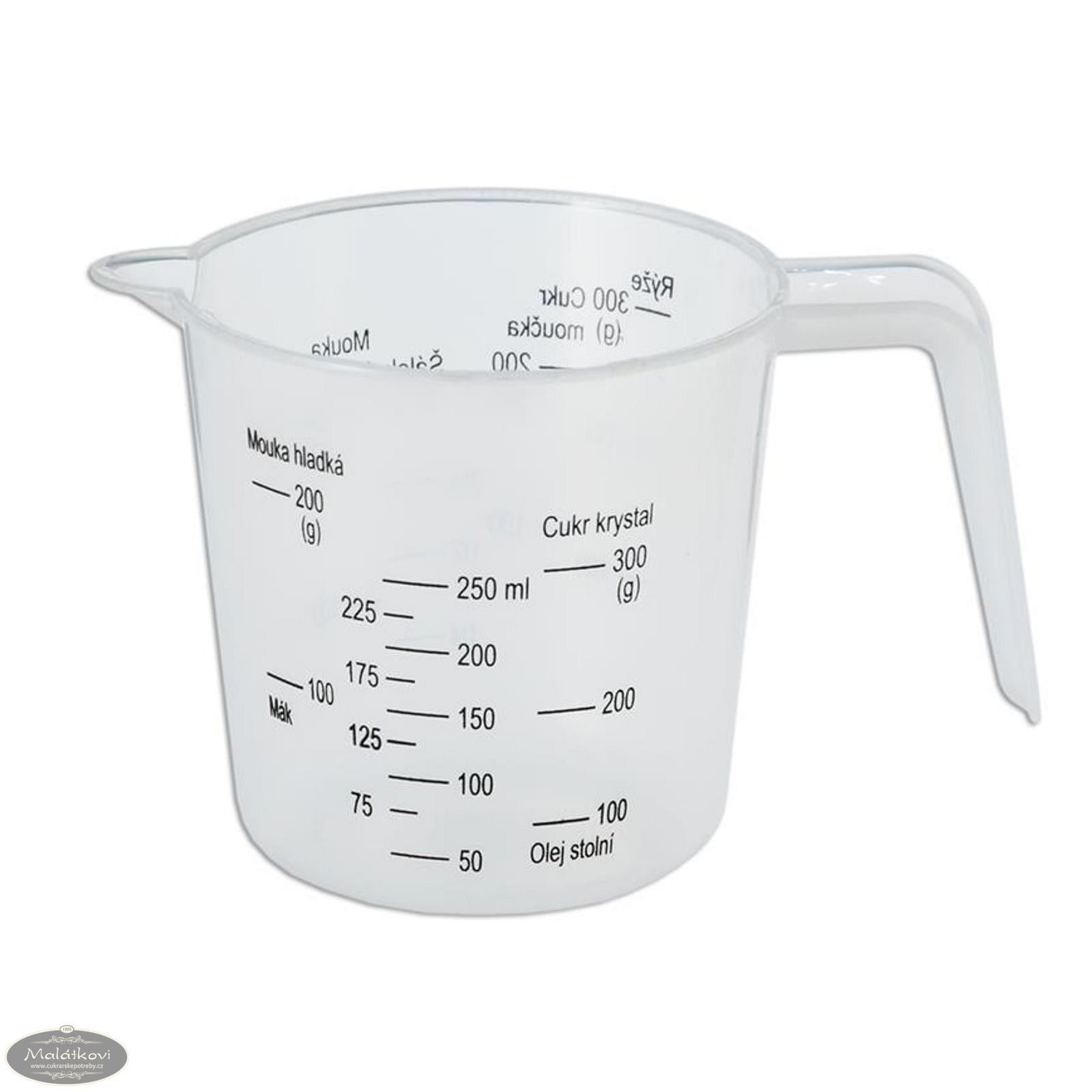 Odměrka s uchem a potiskem, který vám pomůže naměřit správné množství tekutin v ml, cukru, mouky... Materiál: kvalitní…