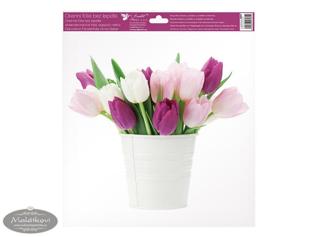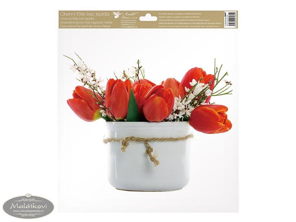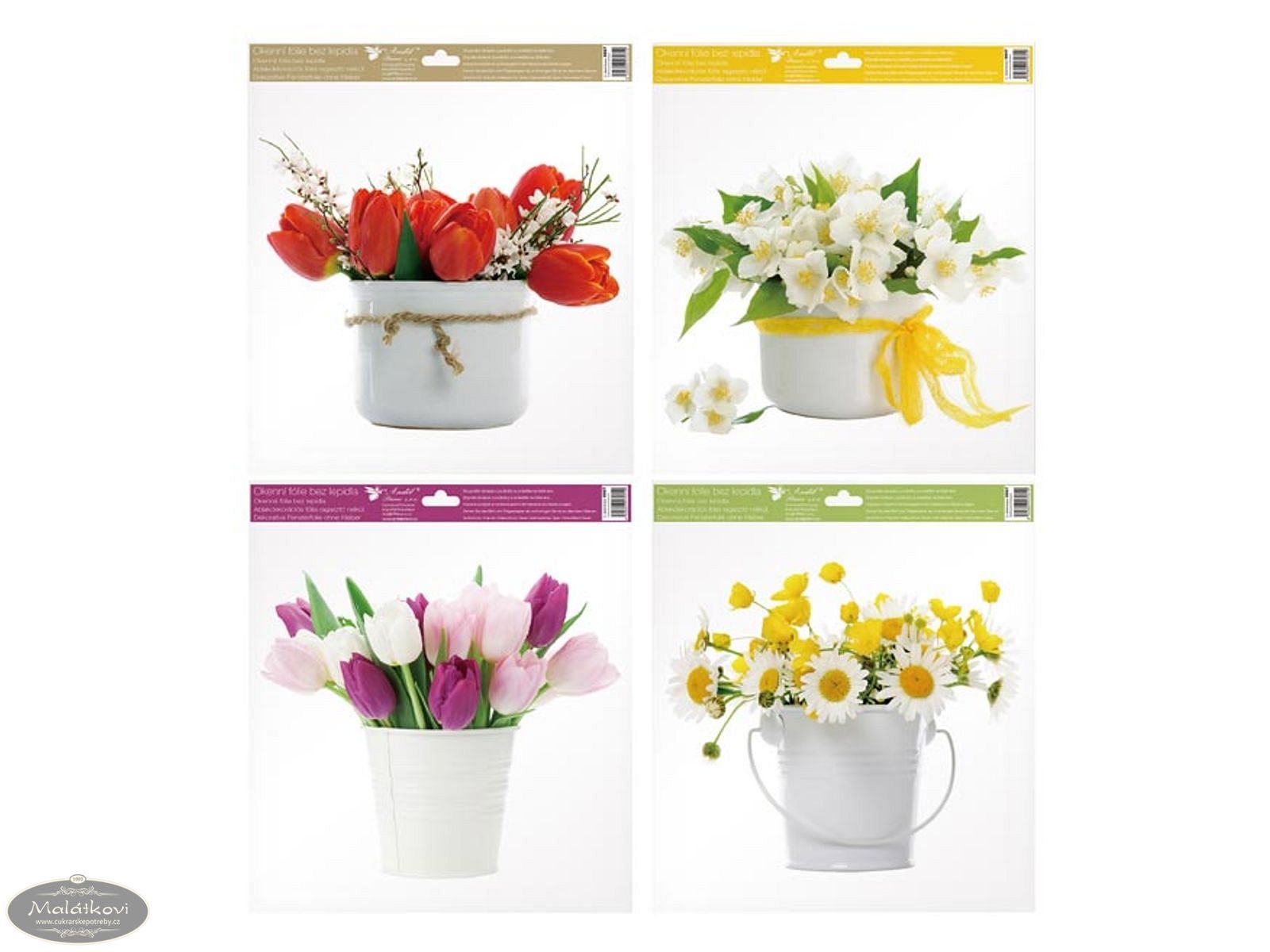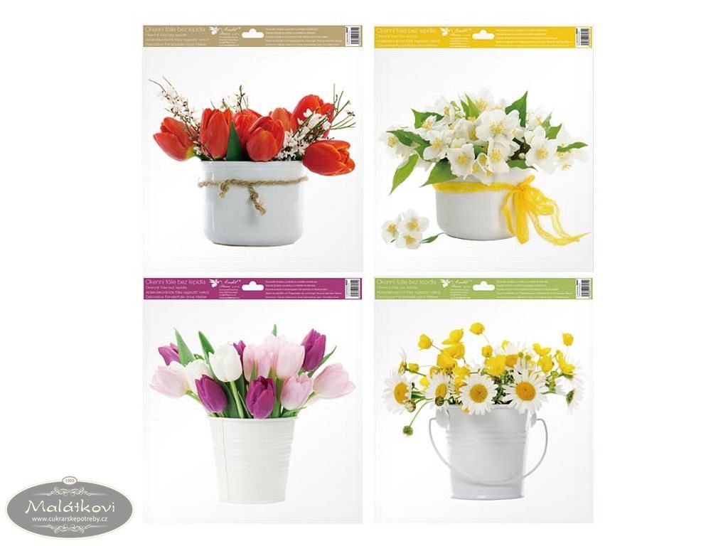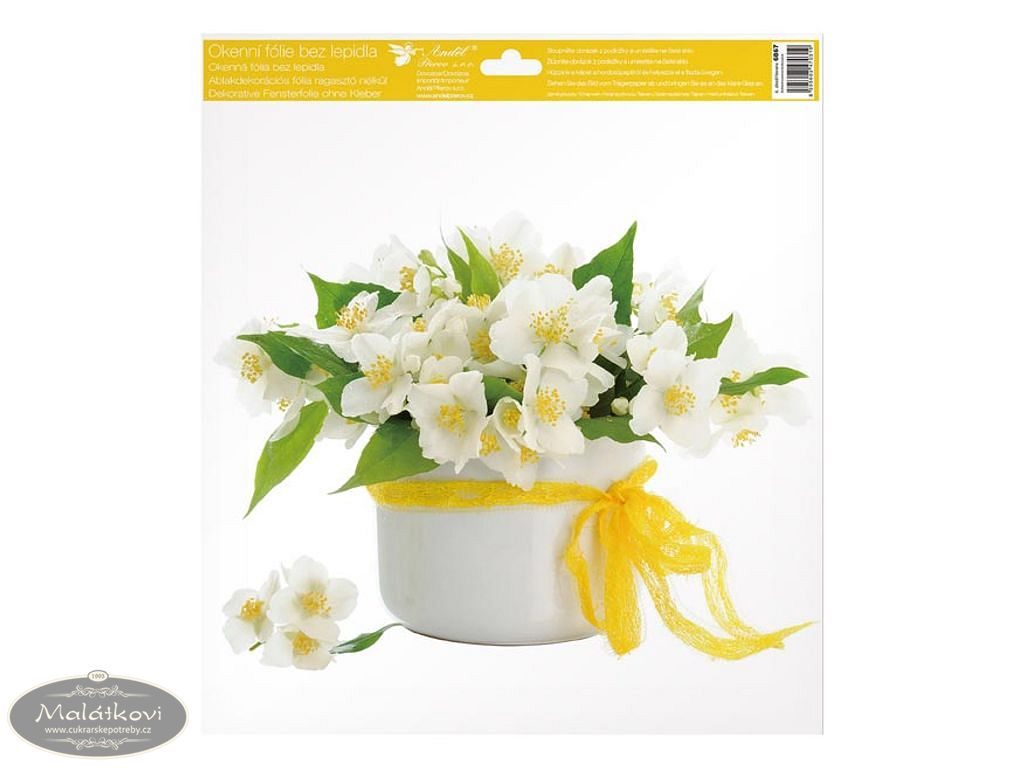 Okenní fólie větve v květu s glitry, 30x42 cm