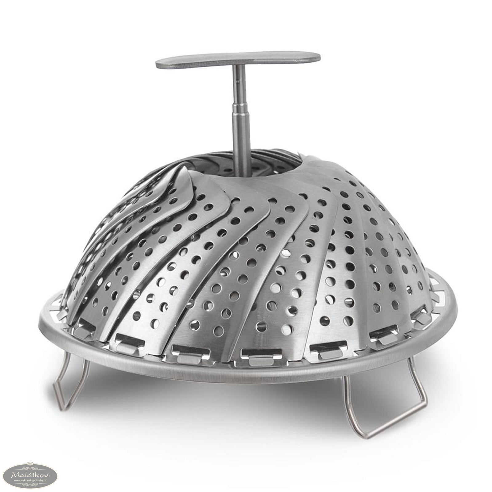 Tento skládací pařáček je vyroben z kvalitního nerezu, což zaručuje dlouhou životnost a snadnou údržbu. Díky skládacím nožkám a středové tyčce je velmi kompaktní a snadno skladovatelný, což oceníte zejména v menší kuchyni.