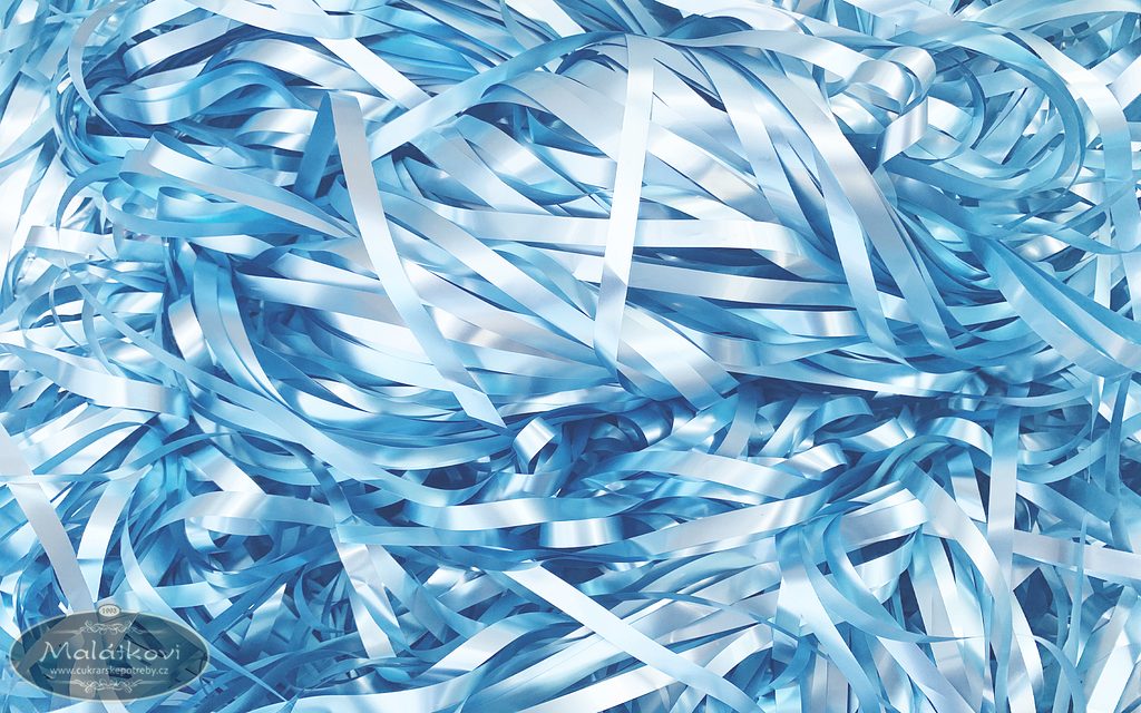 Nebesky modrý foliový závěs se hodí jako výzdoba či zakrytí.