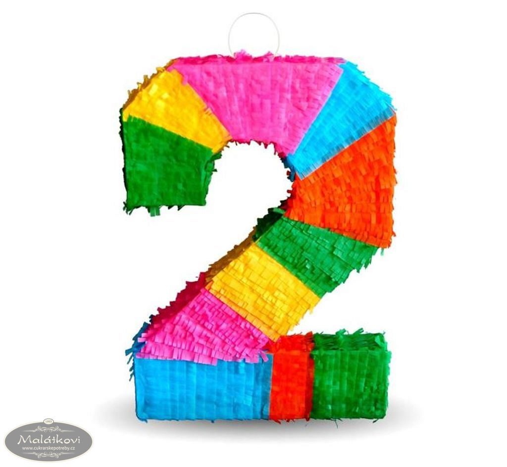 Piňata číslo " 2 " barevná - rozbíjecí, 50x35x7,5 cm
