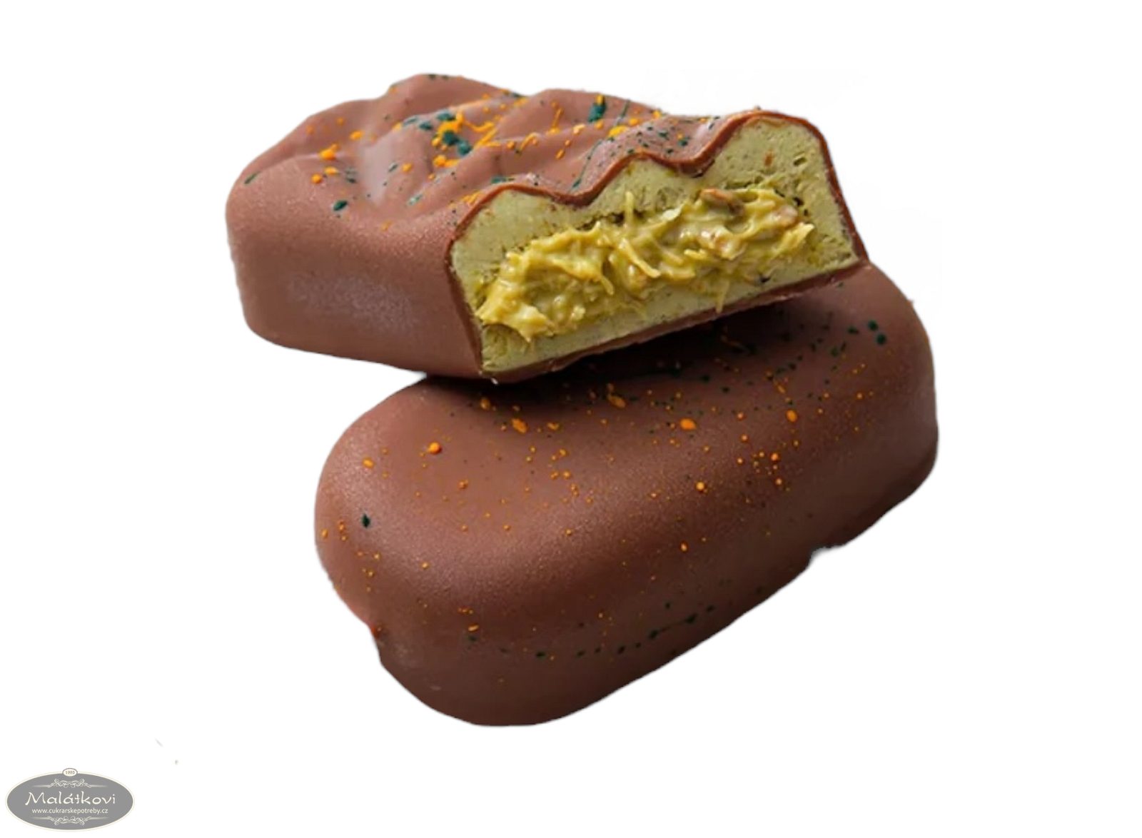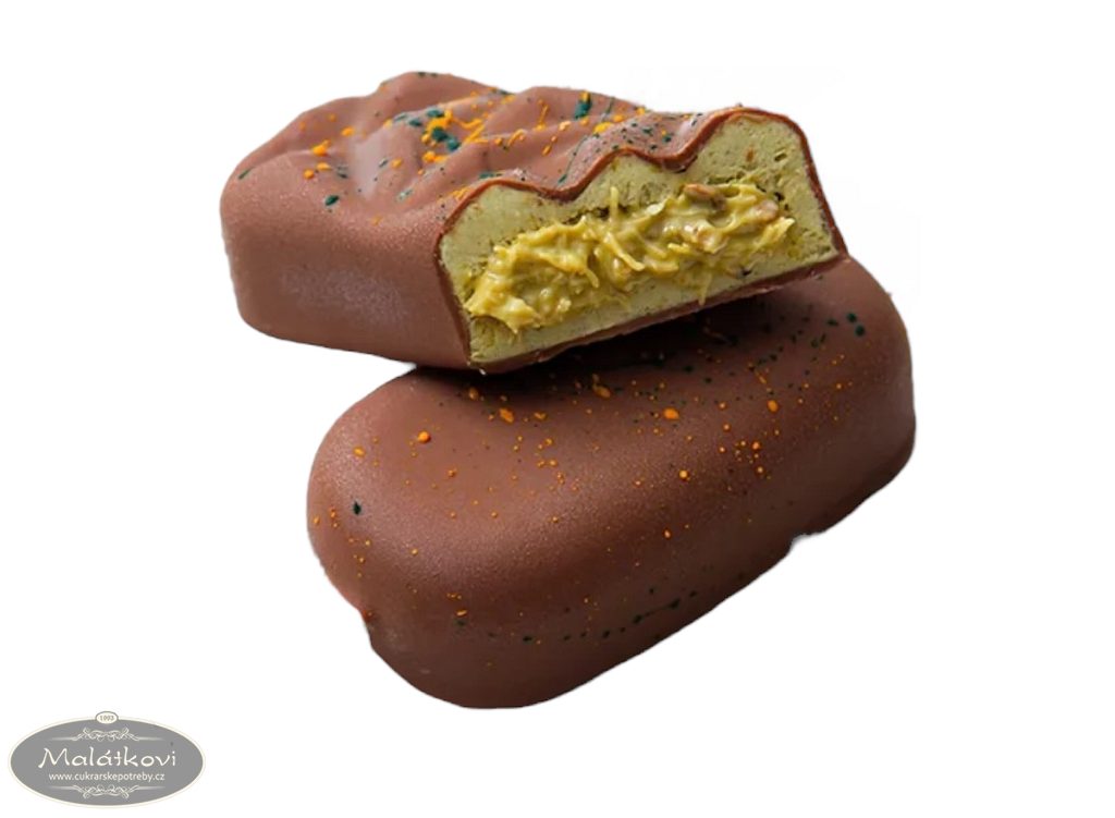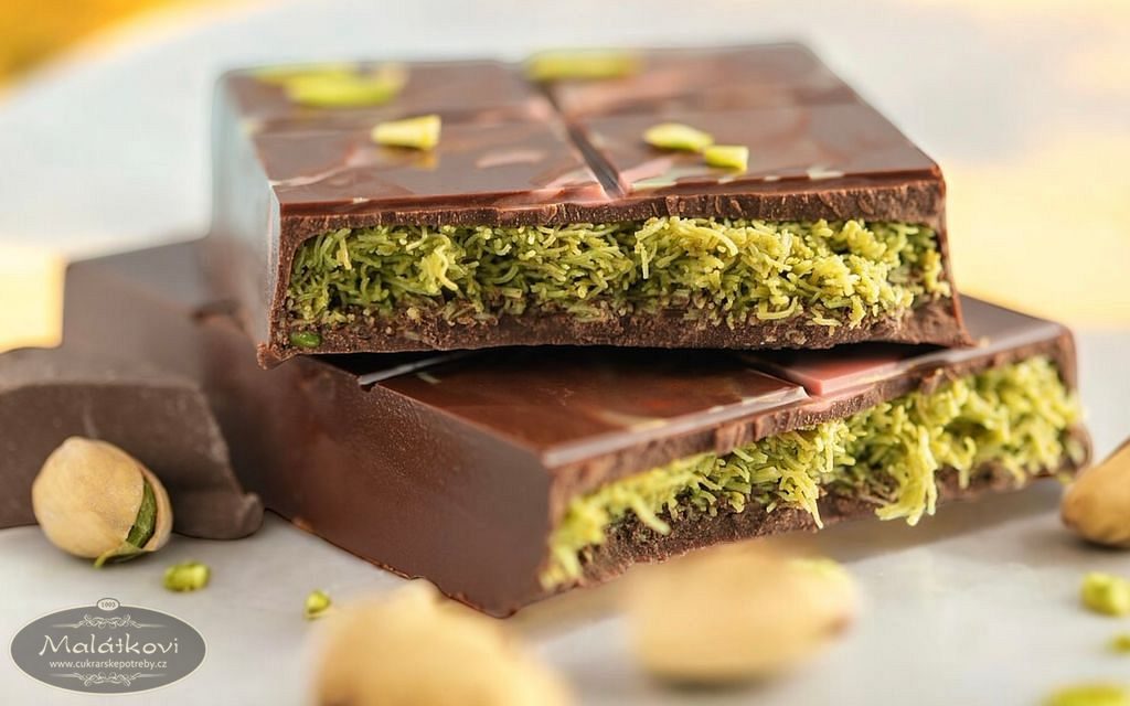 Složení výrobku:Rostlinný tuk (palmový, slunečnicový), cukr, LAKTÓZA, PISTÁCIE (18%), modifikovaný škrob, sušené odstředěné MLÉKO, emulgátor lecitin (ze SÓJE), aromata, antioxidant: extrakt z rozmarýnu. Může obsahovat JINÉ OŘECHY.