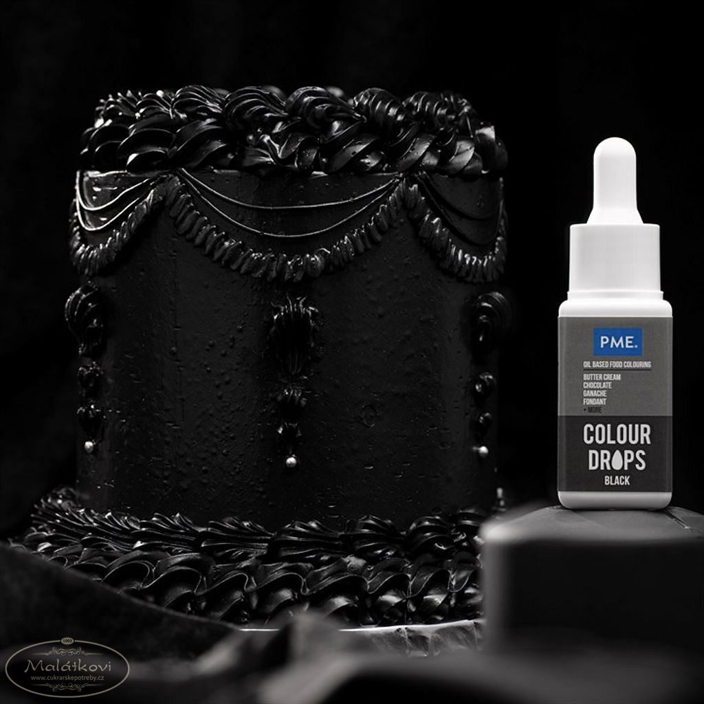 Olejová potravinářská barva PME Colour Drops Black – intenzivní černá pro profesionální zdobení
