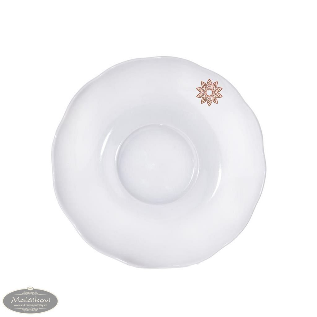 Elegantní podšálek s ozdobným okrajem, který dodá vašemu stolování nádech sofistikovanosti. Tento podšálek je vyroben z kvalitního porcelánu a jeho atraktivní design s jemnou vlnkou na okraji dělá z každé šálky nezapomenutelný zážitek.